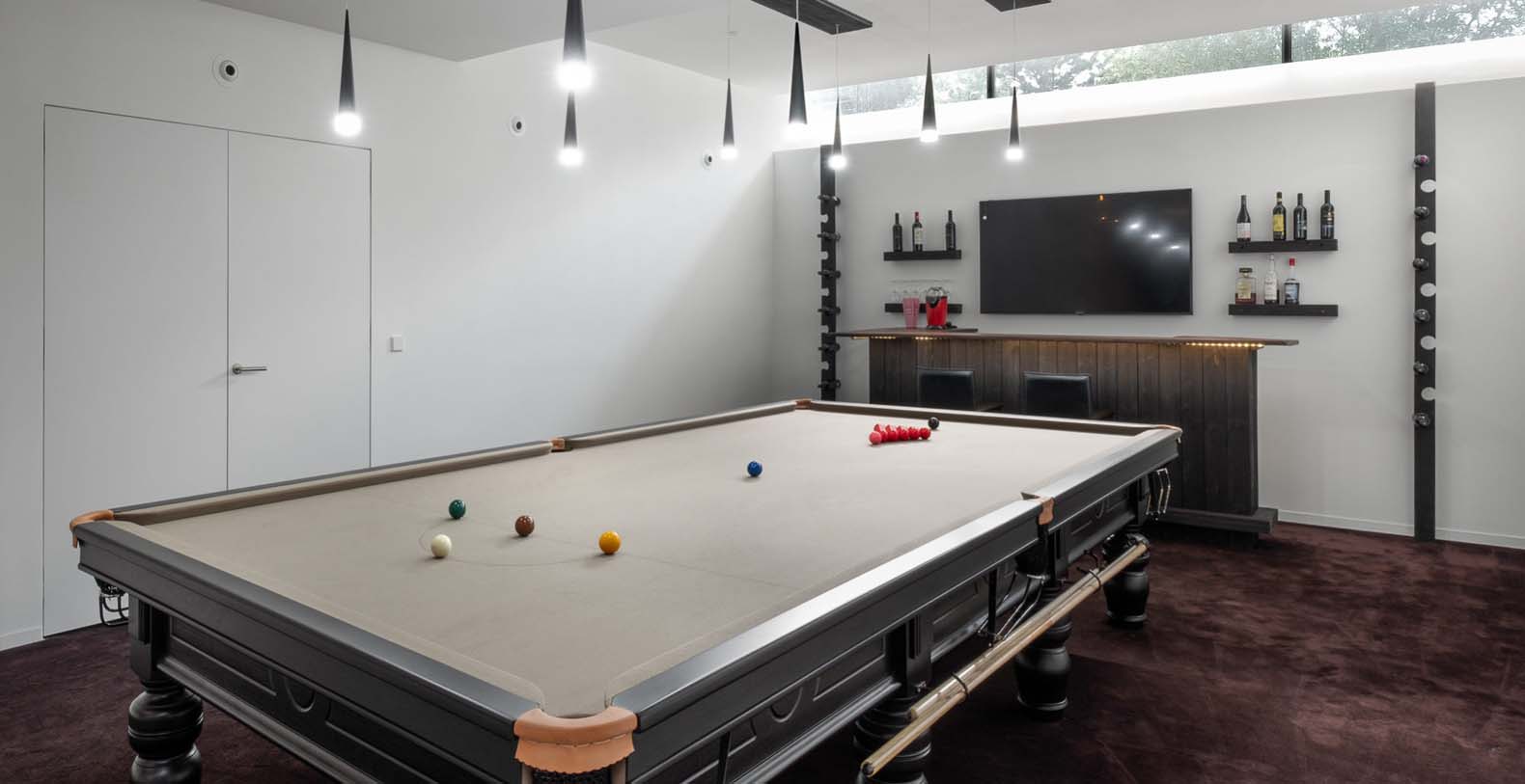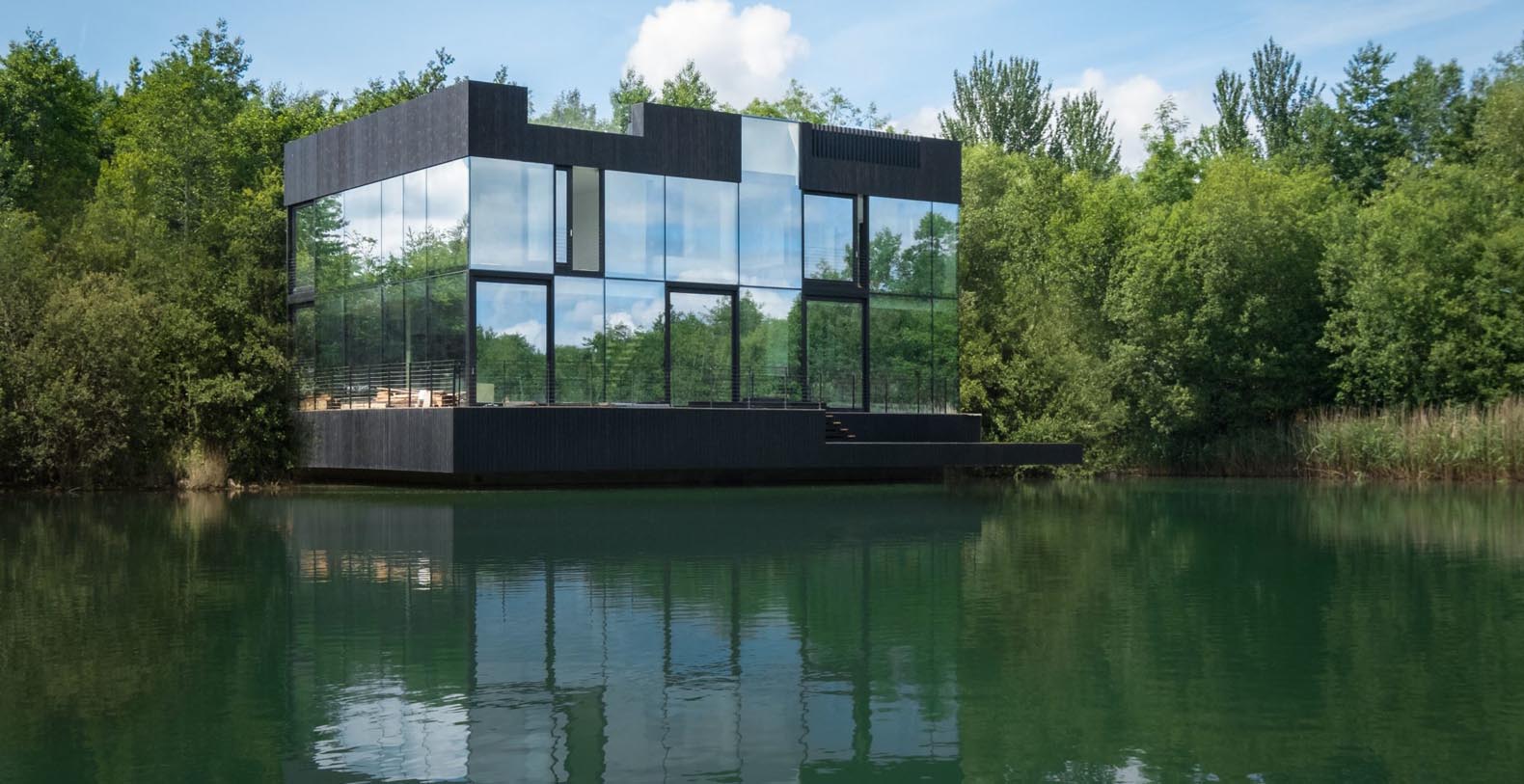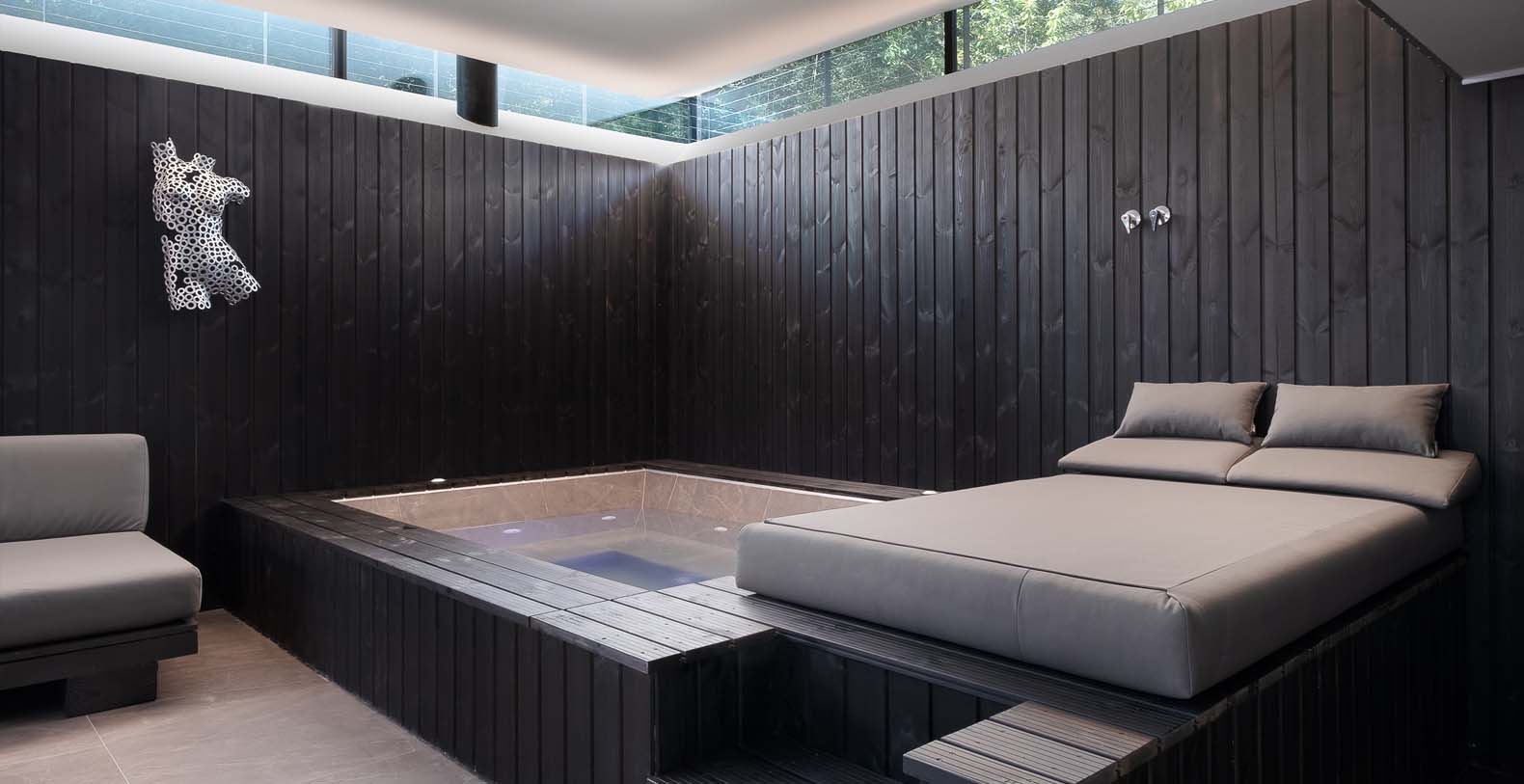 The basement incorporates a relaxation/leisure zone (private cinema, games/bar area, wellness / spa area) and sits in the lake. Despite being underground the basement has a bright and spacious feel from windows at a height of 3 meters, allowing light to flood into the wellness and games rooms. The bright central stairwell provides further natural light all the way from the central glass roof section.