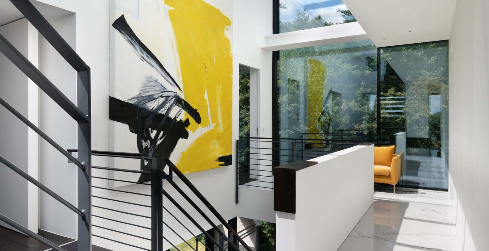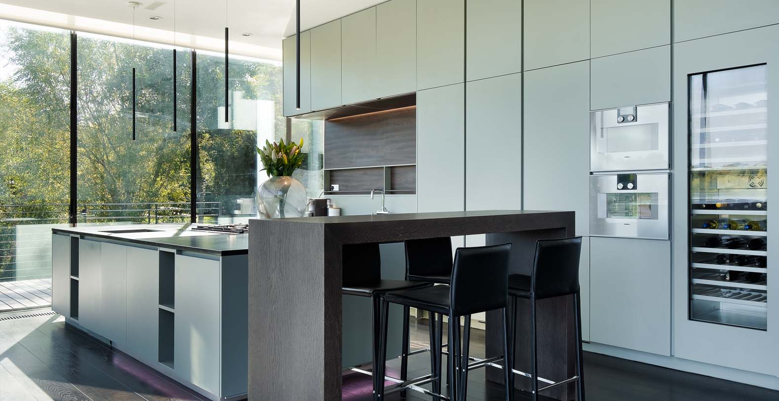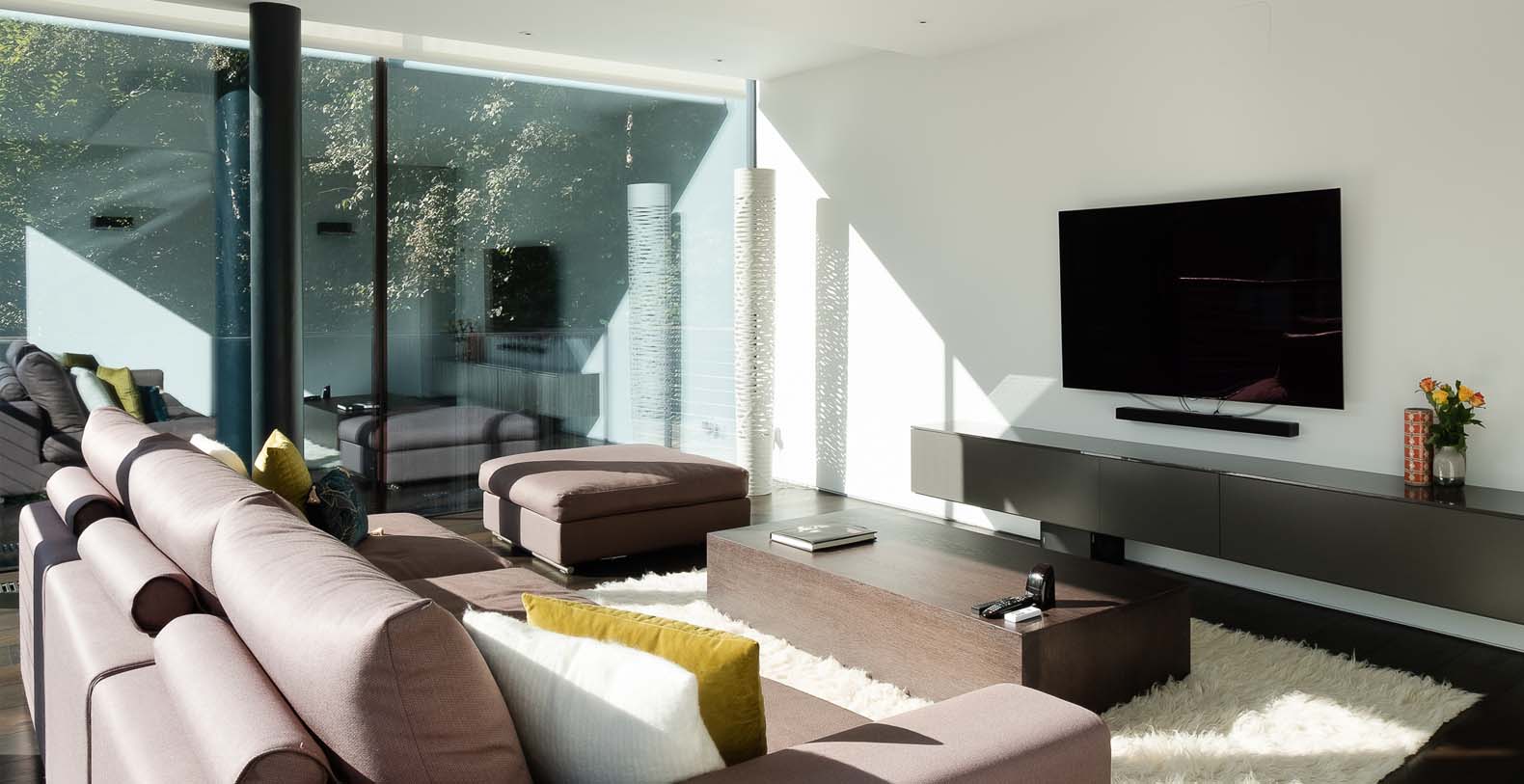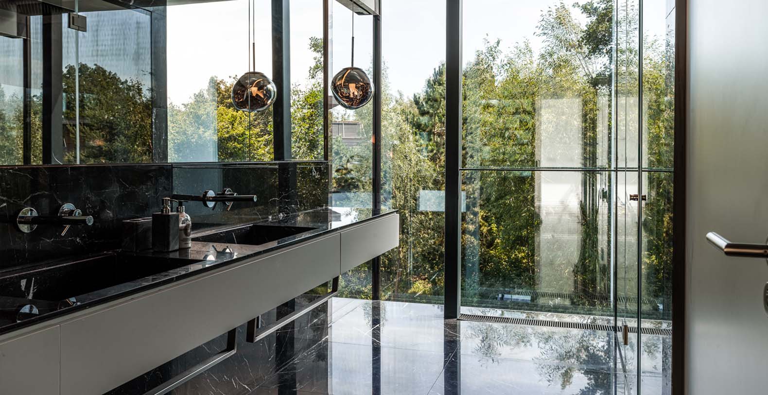 The basement incorporates a relaxation/leisure zone (private cinema, games/bar area, wellness / spa area) and sits in the lake. Despite being underground the basement has a bright and spacious feel from windows at a height of 3 meters, allowing light to flood into the wellness and games rooms. The bright central stairwell provides further natural light all the way from the central glass roof section.