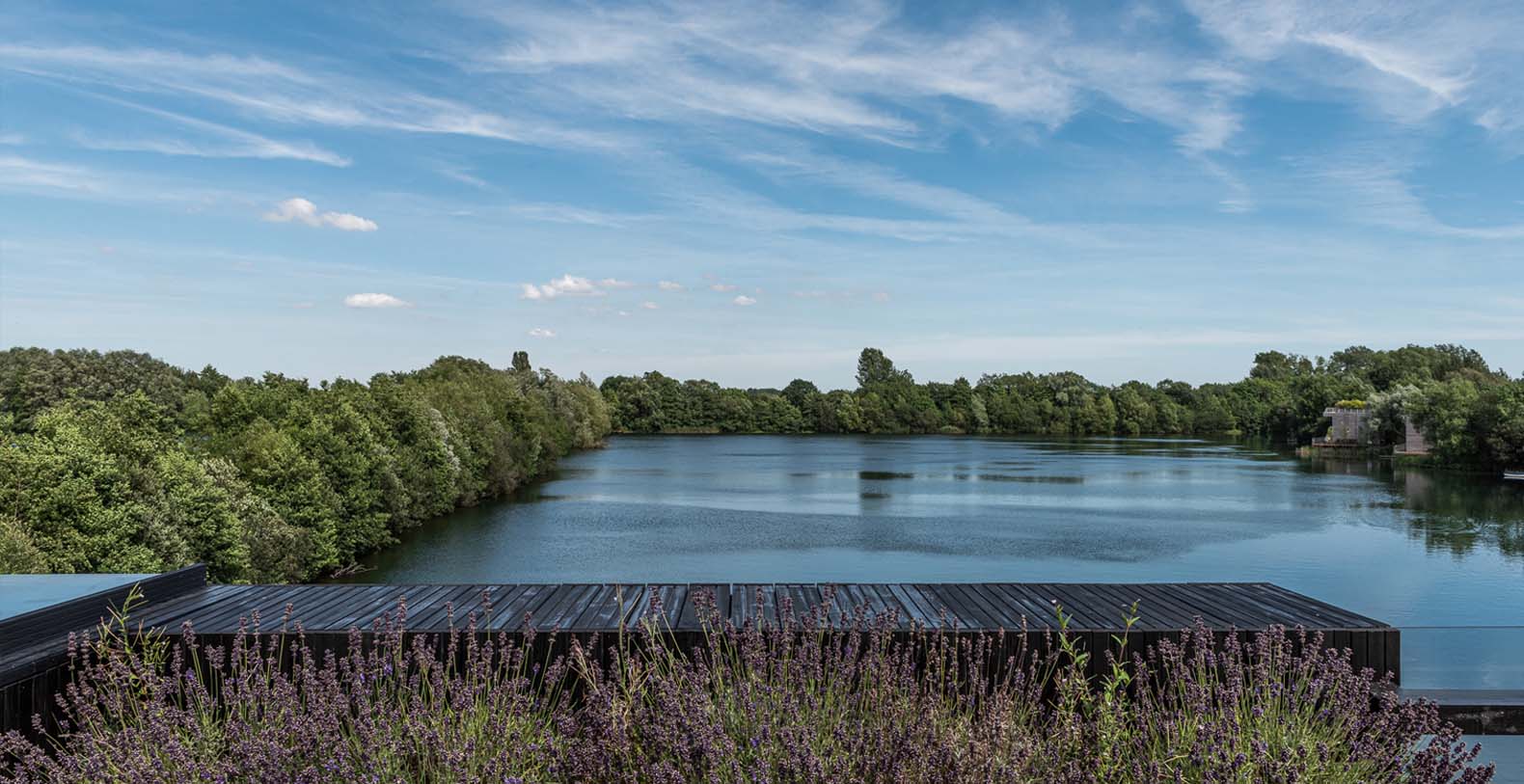All the ground floor has an almost 360 degree decked terrace leading on from the various living spaces providing access to the lake, lower deck and the private garden with picnic bench.