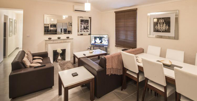 As you enter the apartment, you will find a well appointed living, sitting and dining area, with a long open plan kitchen. You can comfortably seat 6 at the dining table and there are two leather sofas, one of which can be turned into a bed.
