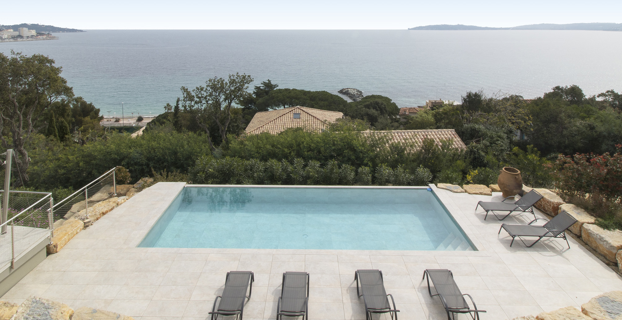 This is a truly stunning brand new villa whose state-of-the art design follows the undulating profile of the hill, exposing the property to 180-degree views over the Mediterranean and the bay of St Tropez towards Ste Maxime. All ensuite bedrooms are arranged on either side of a spacious central living area and equally enjoy stunning sea views and access to the vast terrace. A large canopy stretched over the terrace creates a pleasant shade, making this the best place in which to while away the hours in company of your family and friends, enjoying one of the most inspiring vistas of the entire Riviera.