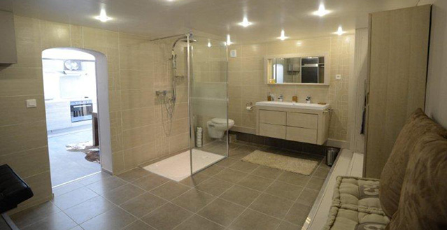 Ground level : Double entrance with guest toilets and dressings - Living room 60 m² opening on a large terrace offering a superb view on the vineyards and with sofas, table with 6 chairs and gas BBQ - dining room 25 m² for + 10 pers. - Full equipped kitchen 25 m² with cellar (with another fridge and frozen) & laundry space - 2 bedrooms (Ref Manhattan & Ref Lilas) with 2 bathrooms ensuite. The bedroom Lilas is the smaller one but offers a private outside space with table and chairs