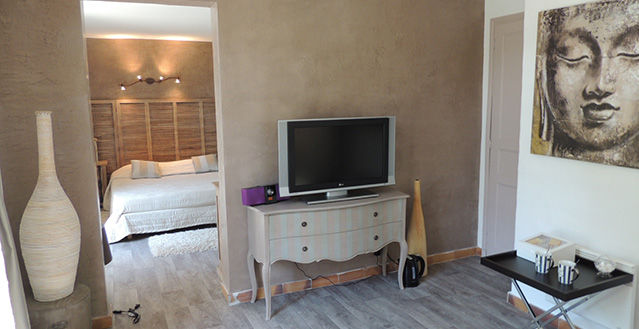 Independent guest house near the swimming pool : Suite (ref Caramel) with 2 bedrooms with 2 shower rooms with wood terrace (sofas + table and 4 chairs) or guest suite (30 m²)