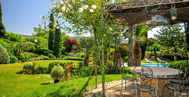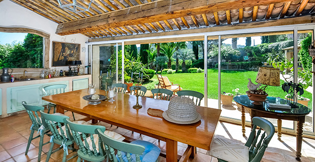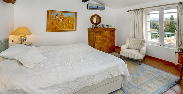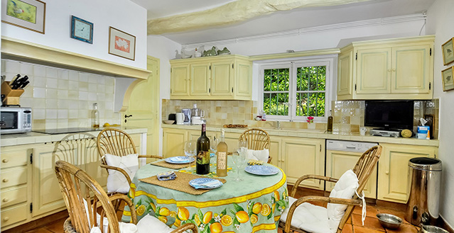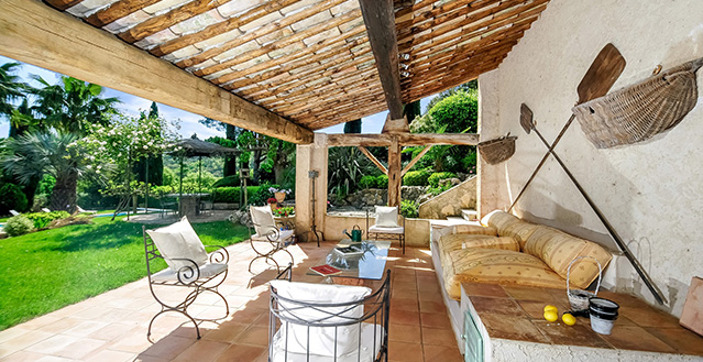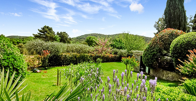 The house is centred around a large and comfortable living room, which is air conditioned in the heat of the summer but also has an open fireplace for use on cooler evenings. An outdoor 'au vent' - a covered seating area offering lovely views over the vineyards to Grimaud - a particularly magical sight in the evenings when the castle is floodlit and you can relax here listening to the crickets singing! The mature gardens are delightful, the rural setting idyllic, and the proximity to Grimaud and other attractive villages such as Ramatuelle and La Garde-Freinet highly appealing.