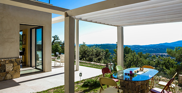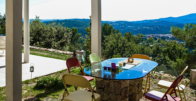 This is a peaceful setting for this villa with views near Grasse, close to the perfume town of Grasse, with narrow pedestrian streets, a market square, museums and perfume houses open to the public. The local village of Le Tignet no longer offers traditional village amenities, but nearby Cabris has shops and lovely restaurants, and Speracedes an interesting olive mill to visit.