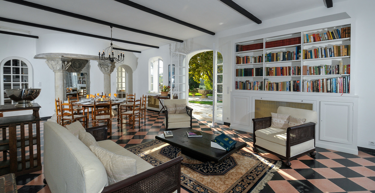 Living room with French doors opening onto the garden