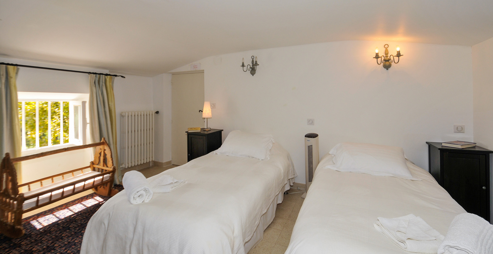 Twin bedroom (2x 0.9m), low sloping ceiling.