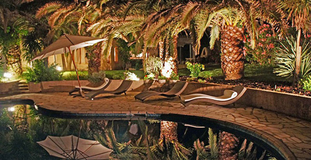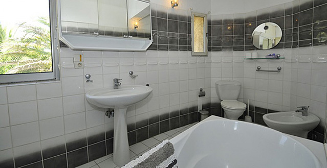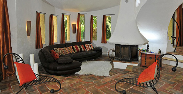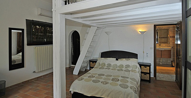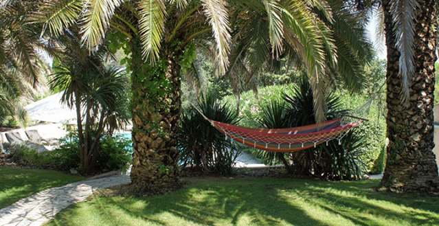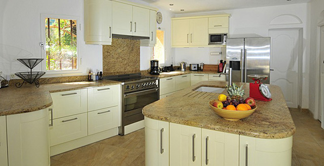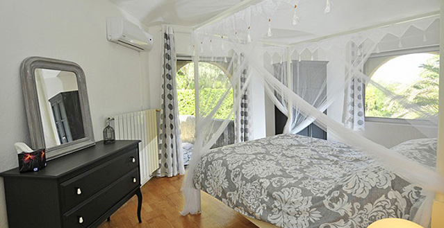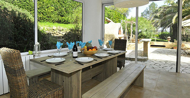 The living area is spacious and light, with unusual curved walls and a large fireplace. Outdoor terraces offer plenty of space for dinners al fresco, including a fabulous pizza oven and built-in barbecue. Surrounded by a lush garden mainly laid to lawn, mature shrubs and large palm trees, this villa enjoys total privacy and therefore is ideal for those wishing to relax and get away from a frantic pace of life, but still be able to enjoy an evening stroll to a good restaurant.
