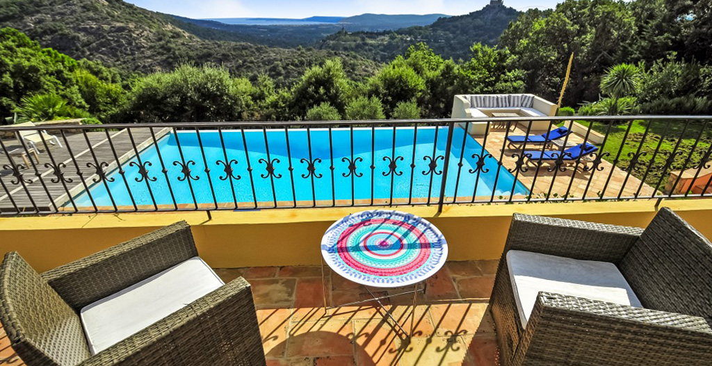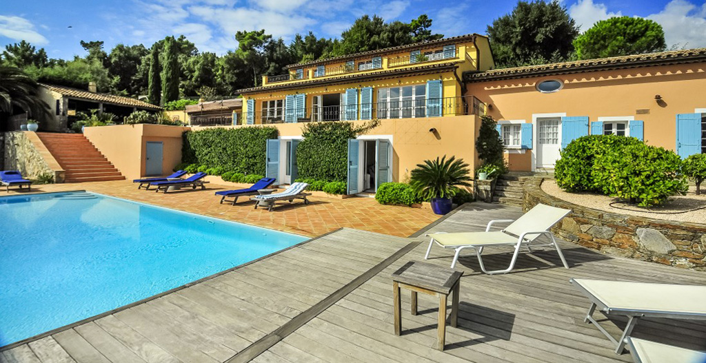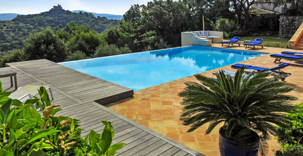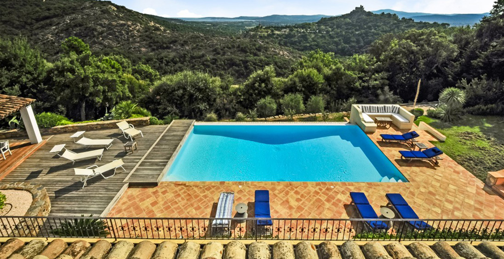 French Riviera luxury villa near Grimaud - Set in a dominant hillside position overlooking the Gulf of St Tropez and Chateau Grimaud, La Radieuse is an elegant property ideally located on the outskirts of the perched village of Grimaud with its restaurants and picturesque Medieval quarter, and a few minutes' drive from St Tropez and the splendid French Riviera.