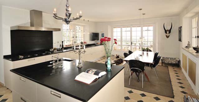 Large, modern kitchen/breakfast room (TV), French door to covered dining terrace.