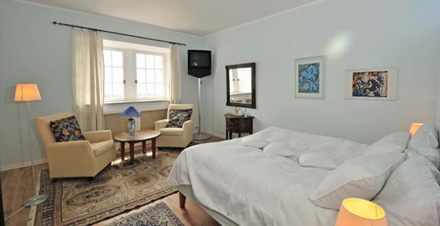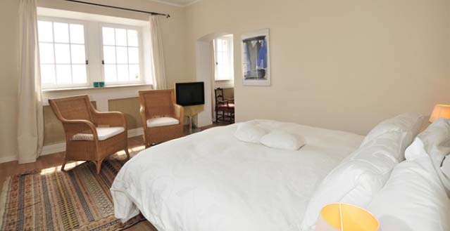 Master double/twin bedroom (1.80m or 2 x 0.90m), (TV), French door to balcony, air-conditioning, ensuite bathroom with walk-in shower, WC, ensuite sitting room in tower.