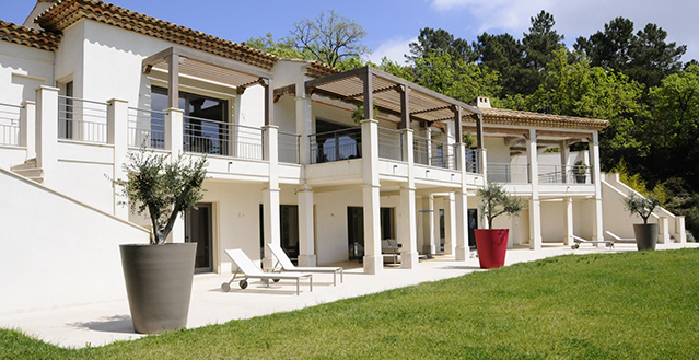 An absolutely stunning newly built Villa just 2.5 miles from La Garde Freinet but totally secluded with wonderful views across the countryside. The well tended terraced garden of more than 4 acres with an infinity rock pool is surrounded by forest, ideal for groups looking for peace and privacy within striking distance of everything St. Tropez has to offer.