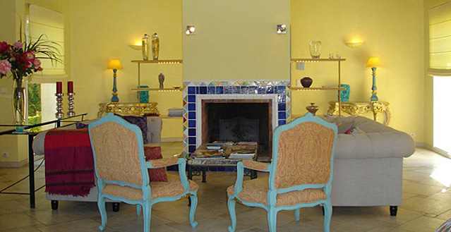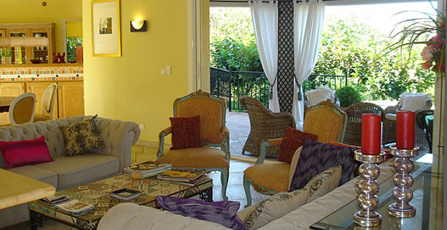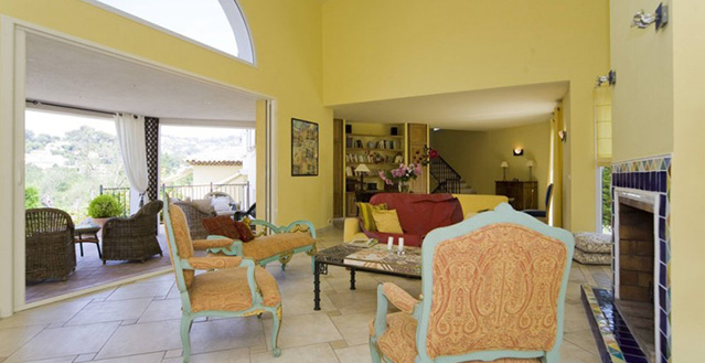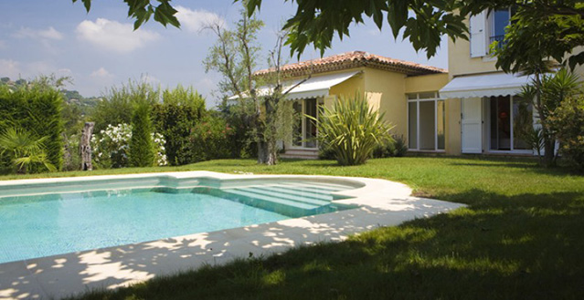 Les Fusains is a lovely family holiday villa in France, set on a gated domaine near Mougins. It is spacious and modern with light, bright colours adding a welcoming touch. A large covered terrace offers a comfortable outdoor living space overlooking the pool and garden.