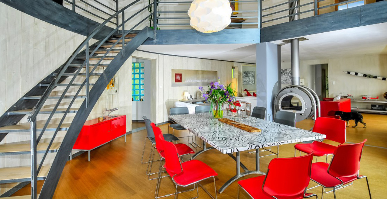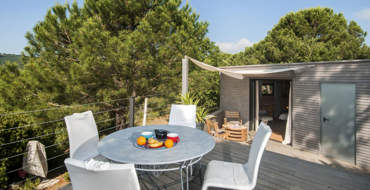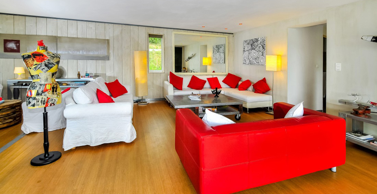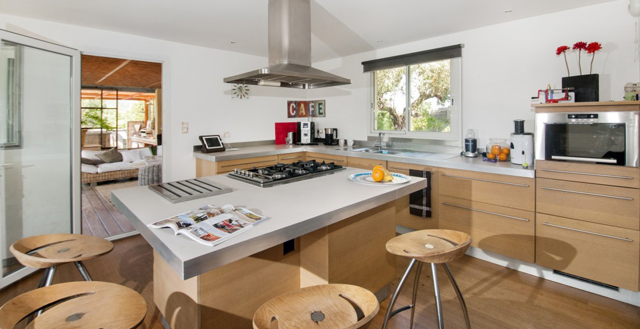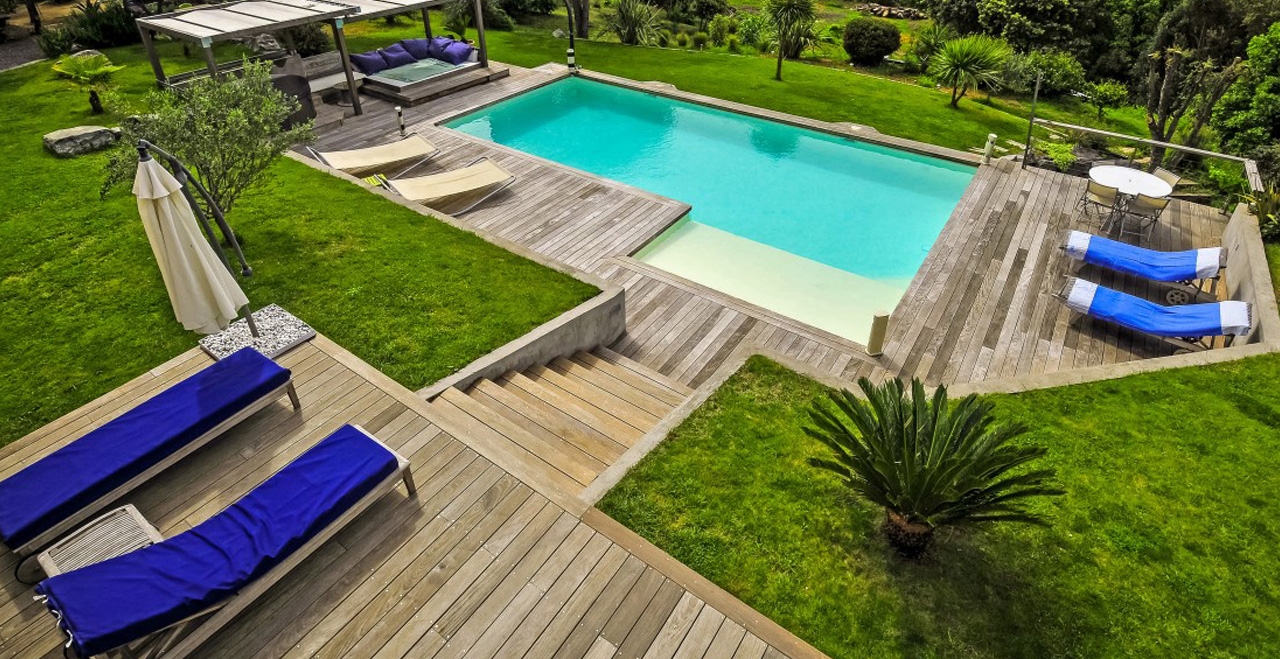 Contemporary vacation villa with pool – This superbly appointed villa is set in a peaceful and secluded area of the countryside between Gassin and La Croix Valmer, a very short distance from the coast. Afine example of modern, streamlined architecture, Les Nénuphars is furnished in stylish cream and white colours with beautiful wooden floors and large windows for maximum exposure to the light and views over the surrounding hills. All bedrooms have sliding doors leading to large decked terraces on both floors.
