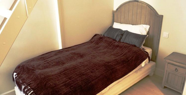 Moving through to the bedrooms, all of which are connected by one hallway. The first bedroom is relatively small compared to the other bedrooms but very cosy with a special mezzanine feature. There is a single bed on the ground floor and then up on the mezzanine there is a comfortable double bed. Attention needs to be paid here as there is not much head room on the mezzanine level. This bedroom has a walk in en-suite shower, decorated in a Swedish style with marble and pine tops.