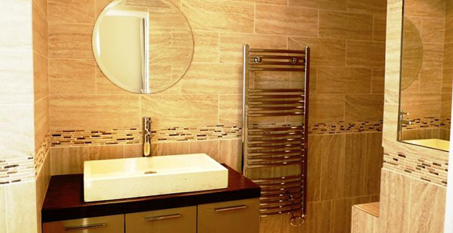 The en suite of this bedroom is extravagant with tiled floors, pine sinks and a walk in Italian waterfall style shower.
