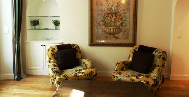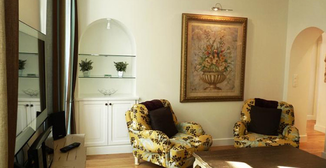 The decor is tasteful and luxurious, with no expense spared. On entering the apartment there is a spacious open plan living and dining area. The interiors and furniture channel a great mixture of modern and antique to create a truly beautiful effect. There are two large and comfortable arm chairs from which to watch a large screen TV with Blue Ray and DVD player. There is also a large comfortable sofa, perfect position from which to watch your TV.