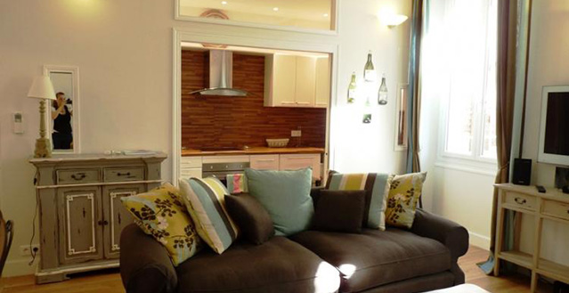 The apartment is located on the second floor of a typical bourgeoisie building with no lift. Just outside the apartment are many great restaurants and several supermarkets only minutes away. The location is very convenient for those attending a congress as the Palais des Festivals is only a couple of minutes away.