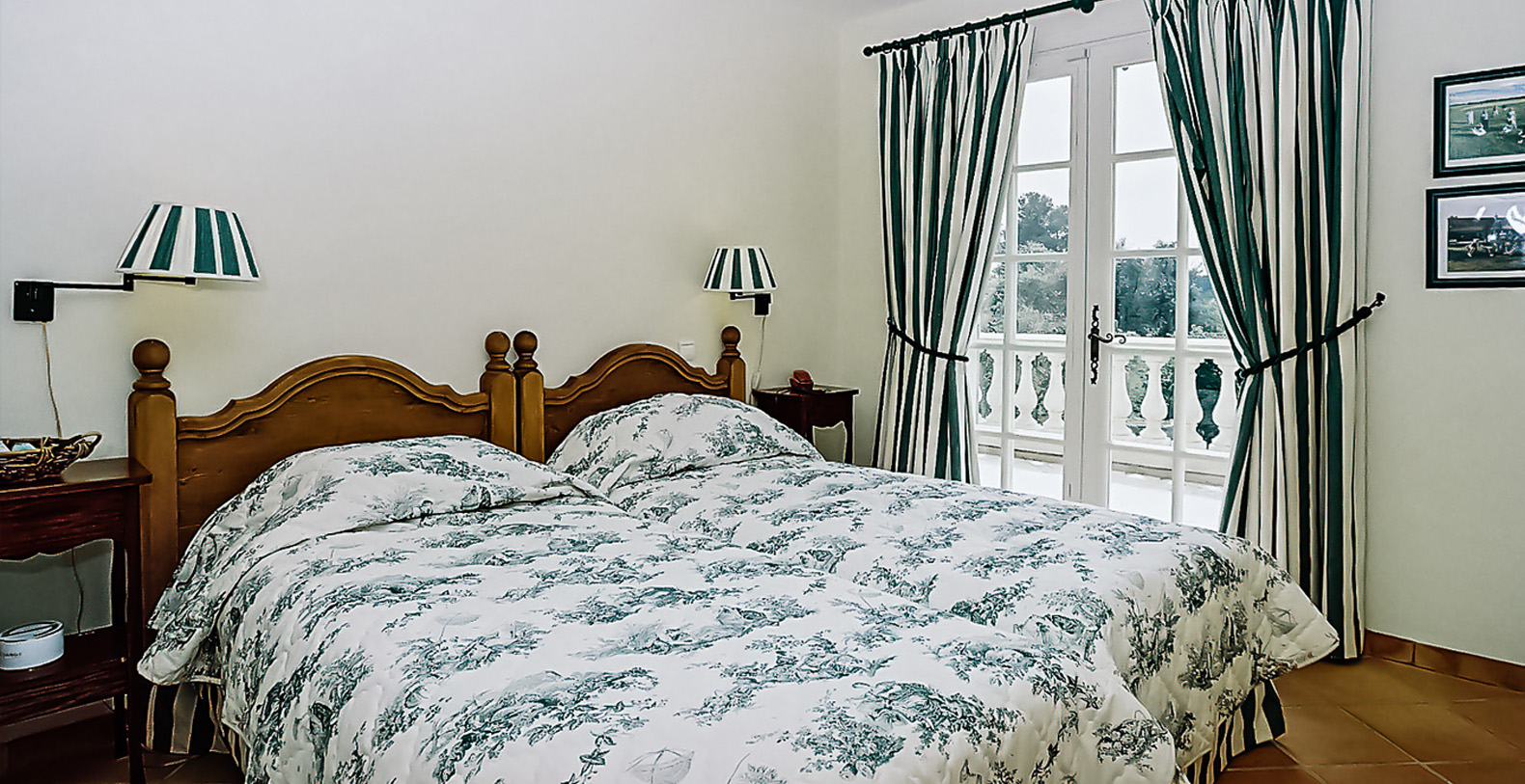 Ground floor: Spacious open plan living/dining room, open fireplace, TV/DVD, French doors to covered dining terrace, garden and pool. Well equipped open plan kitchen , door to dining terrace. Guest WC. First floor: Each bedroom has French doors opening onto a large balcony. Master double bedroom (1.80m), large ensuite bathroom , WC. Two twin/double bedrooms , (2 x 0.90m or 1.80m) each with ensuite bathroom , WC. Further twin/double bedroom (2 x 0.90m or 1.80m) with ensuite shower room, WC. Grounds: Enclosed, partially terraced grounds. Large flat lawn area surrounding the kidney-shaped 12m x 6m salt-water pool (depth: 1m - 2.80m, Roman steps), portable gas barbecue. Children's trampoline (use at own risk). Ample parking.