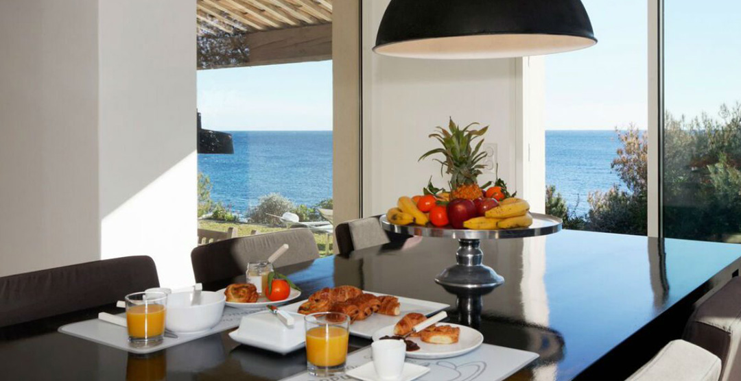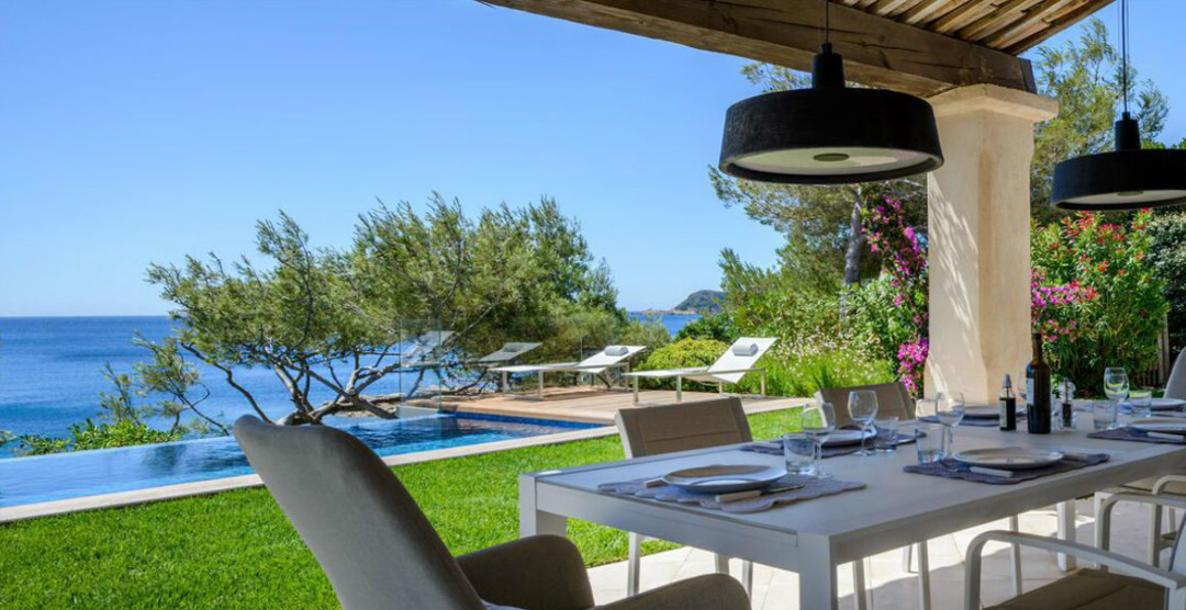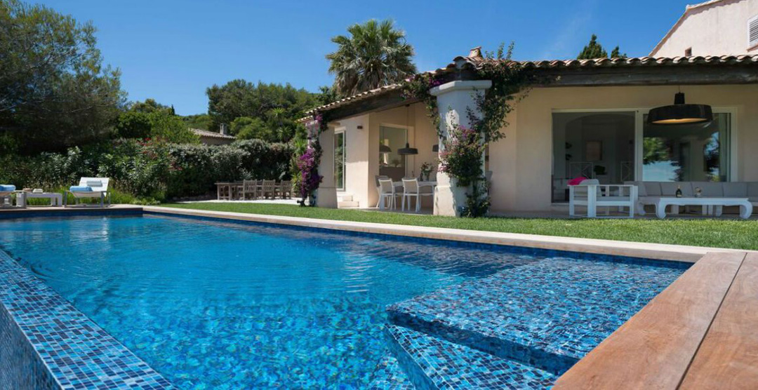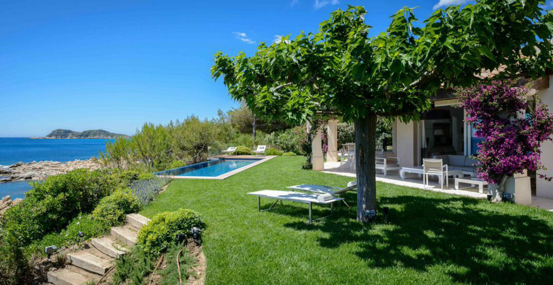 This is an exceptional villa with direct access to the sea, a secret refuge between the pine forest and the water, at the bottom of the Domaine of La Reserve, but only about 10 minutes’ drive from Pamplonne’s famous beach clubs and the nightlife in St Tropez.