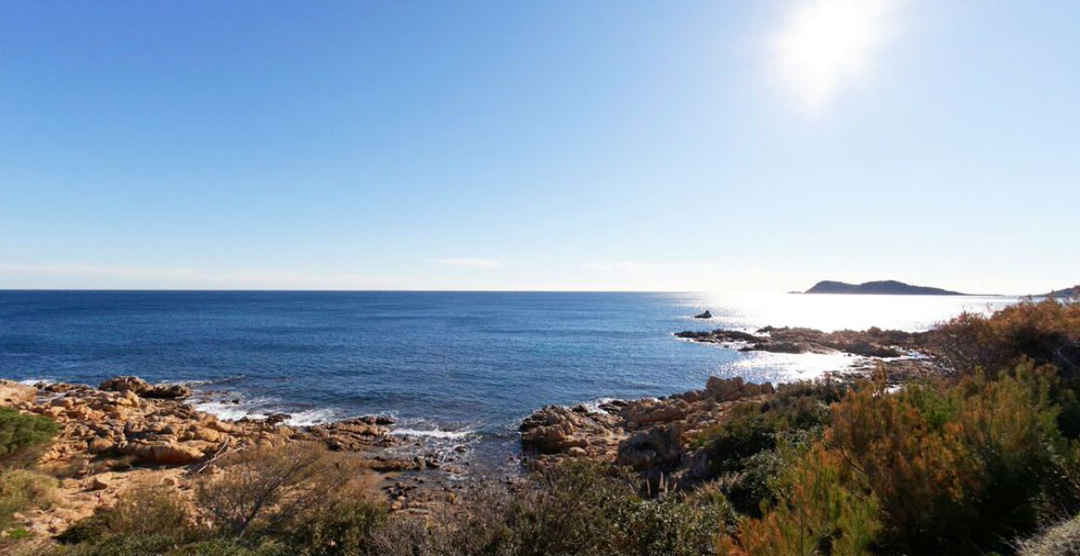 The property has great views of the sea and the coast, and over the pine trees to Chateau Volterra and its vineyards. Swimming pool (10 x 3).There is a covered terrace with wooden table to dine under the stars, with the sea lapping below. To the side of the property a small path leads down to the sea and the rocks below. BBQ.