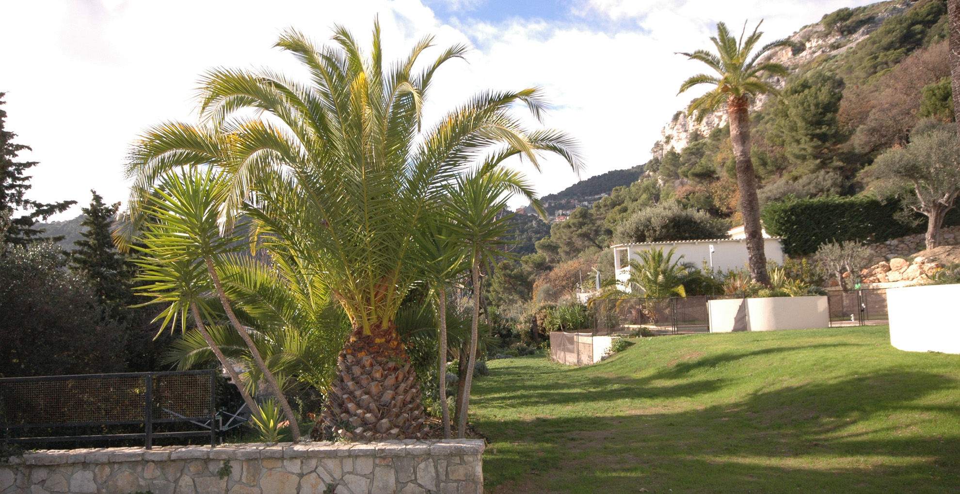Garden With Slightly Sloping Lawn And Mature Palms