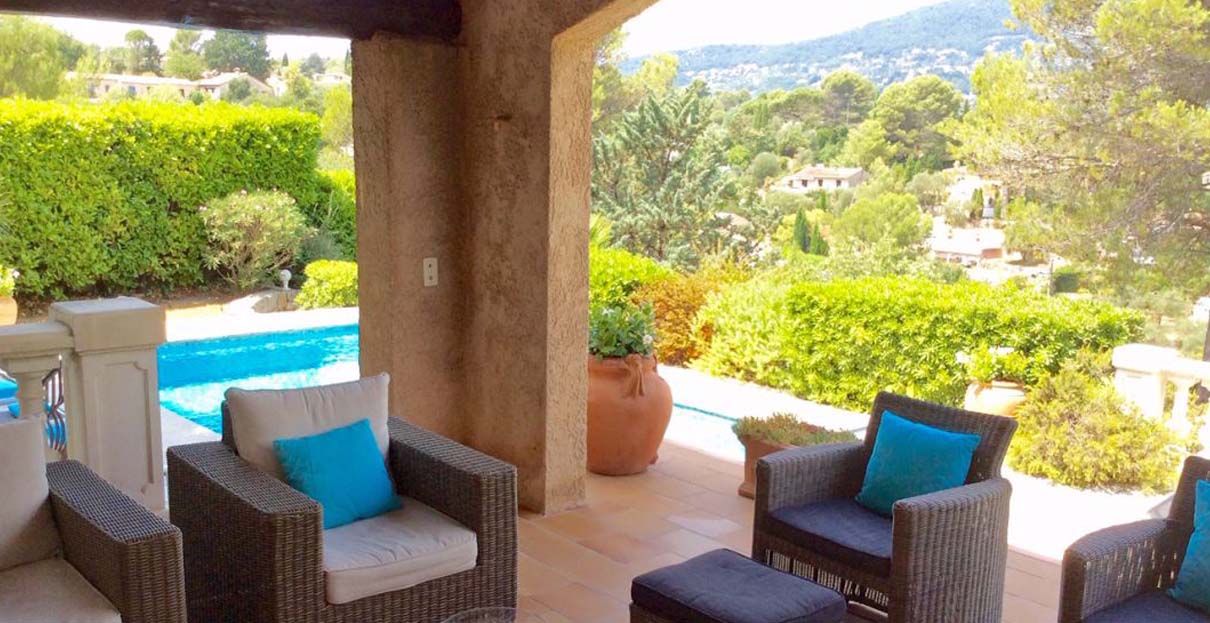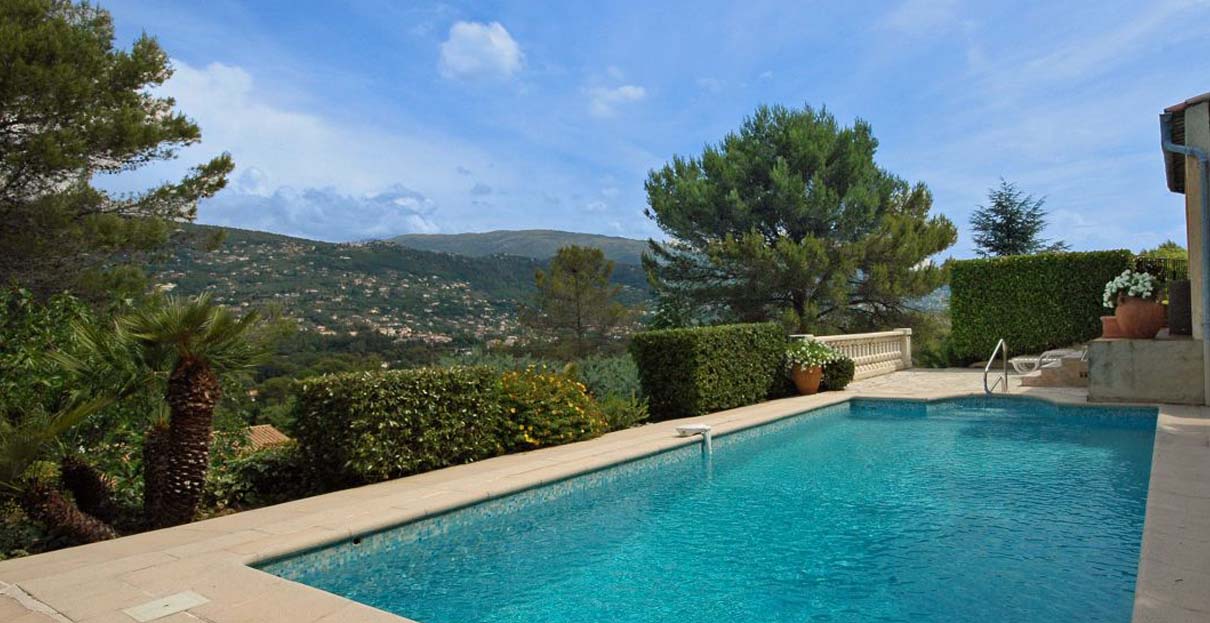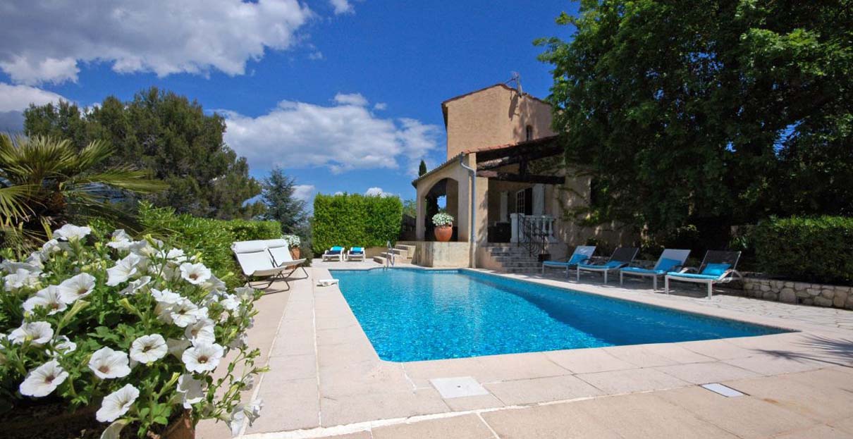 Cote d'Azur country villa with pool & views – Tucked away at the end of a cul-de-sac on the edge of Peymeinade near Grasse, this villa sits in a tranquil, residential location enjoying lovely views over the valley and surrounding hills towards Cabris and Speracedes. With an excellent restaurant and shops within two miles, and the beach of Cannes under 30 minutes’ drive, this delightful family villa is the ideal base from which to explore the Cote d’Azur.