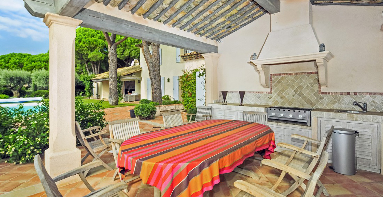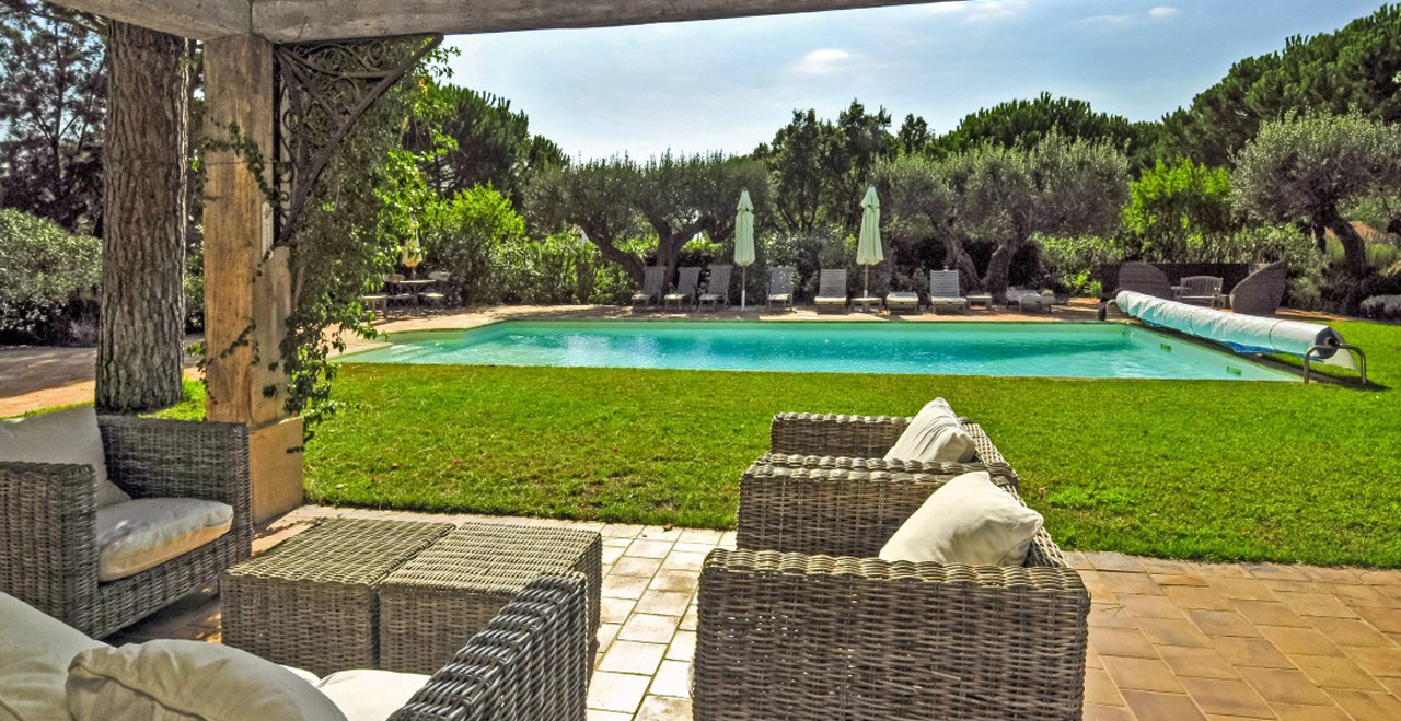 A five-minute stroll away from this perfect haven of peace and tranquillity is one of the most exclusive spots of the entire French Riviera. In fact, the beautiful sandy beach of Tahiti Beach on Pampelonne Bay, its clear blue waters, its water sports facilities and its renowned beach-club restaurants will appeal to children and adults alike. Similarly, St Tropez’s splendid marina, its multimillionaire yachts and glamorous nightlife are just under two miles away. All this and much more await you during your stay at this luxury St Tropez villa by Tahiti beach.