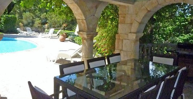 Ideal for large parties, Villa Triton is very well equipped to offer a relaxing holiday in one of the most sought after regions of France. Most of the bedrooms feature large windows and balconies with electric awnings and outdoor seating facilities to admire the surrounding landscape. An enchanting Renaissance style pool with fountain and stone archway embellish the exotic garden, rich in palm trees, pines, mature oaks and shrubs offering plenty of shady areas during the hot summer days. A pool house with summer kitchen, sauna and Jacuzzi complement the splendind pool area which also encompasses a private tennis court and boule pitch just a few steps below.
