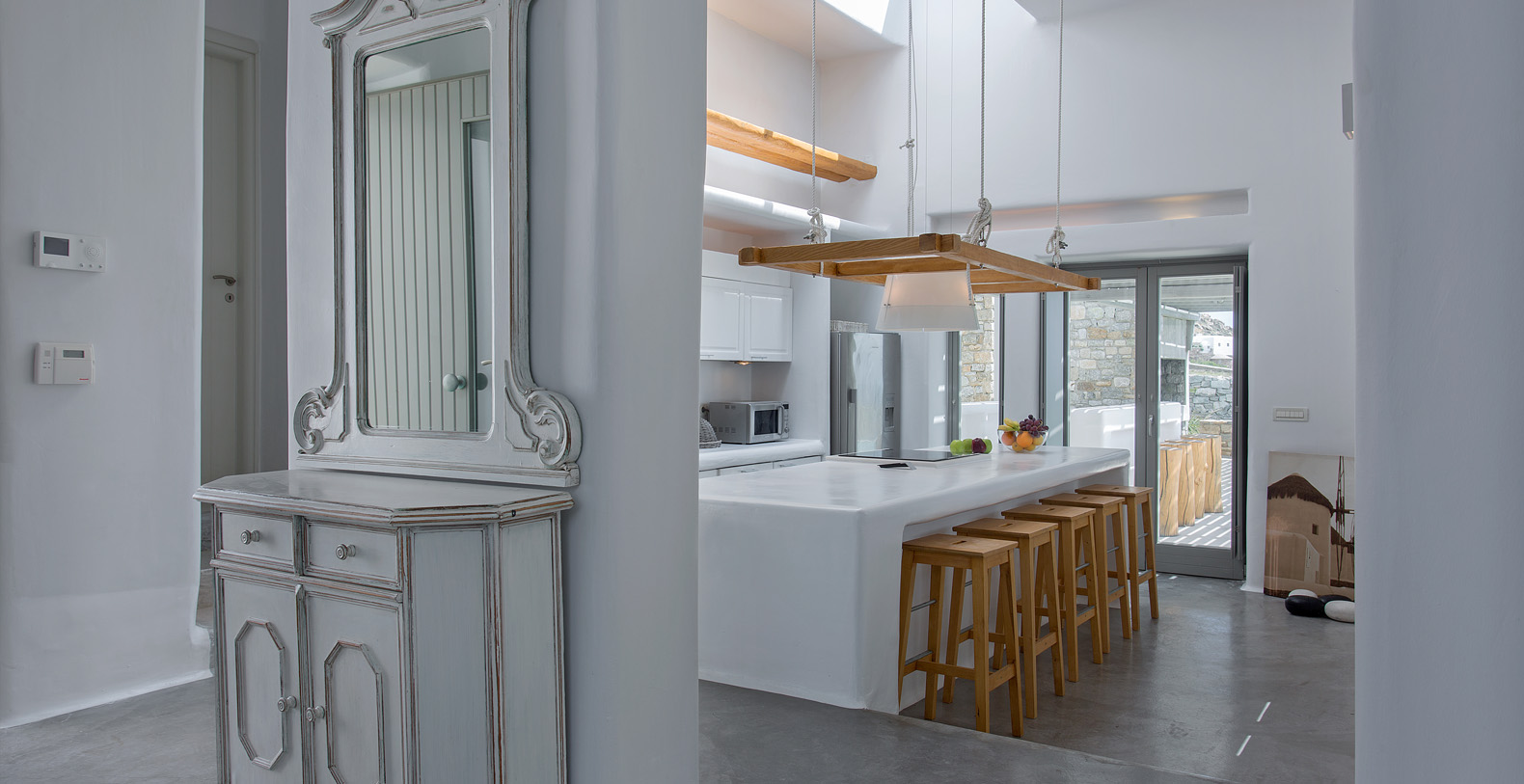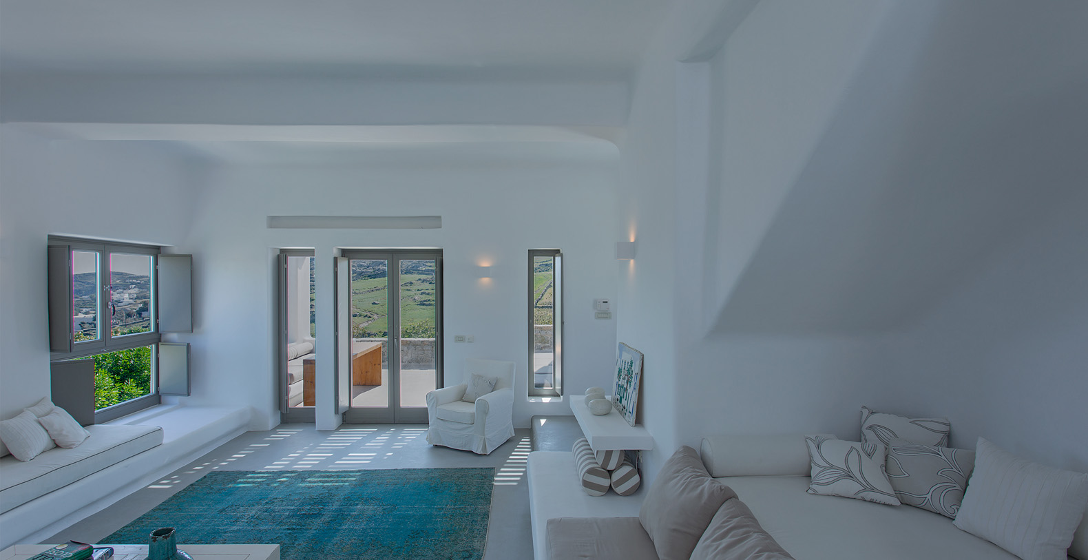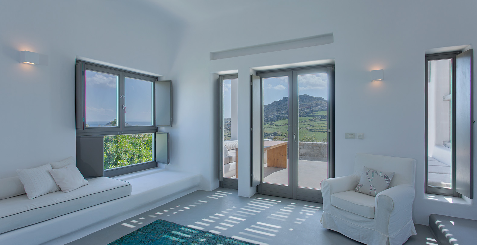 Casa di Luna is a unique 300sq.m villa, located in a 4000sqm plot on the south-eastern tip of the island and very close to the beaches of Kalafatis (walking distance, 10-15 minutes), Agia Anna, Lia, Kalo Livadi, Elia, Ftelia, Panormos and Agios Sostis. Its’ minimalistic design renders it very appealing to young spirited people who want to have the time of their live in Mykonos and it has been featured in the magazine Mykonos villas for three years in a row.