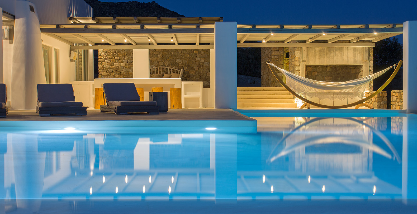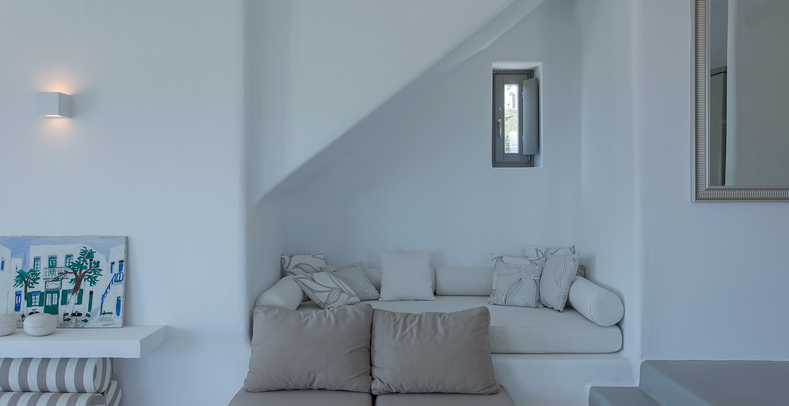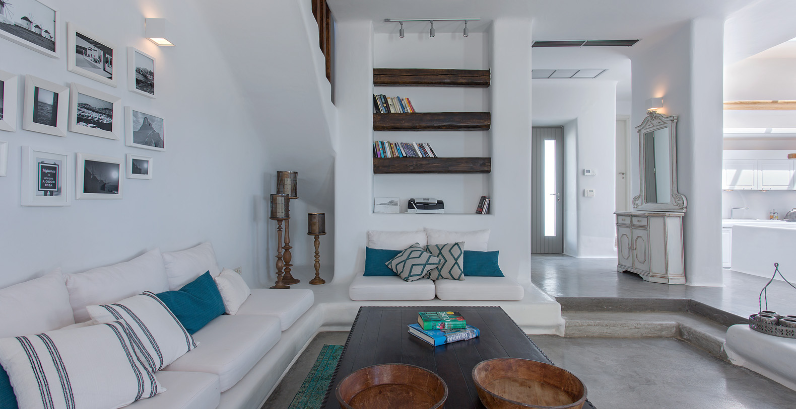 Casa di Luna is a unique 300sq.m villa, located in a 4000sqm plot on the south-eastern tip of the island and very close to the beaches of Kalafatis (walking distance, 10-15 minutes), Agia Anna, Lia, Kalo Livadi, Elia, Ftelia, Panormos and Agios Sostis. Its’ minimalistic design renders it very appealing to young spirited people who want to have the time of their live in Mykonos and it has been featured in the magazine Mykonos villas for three years in a row.