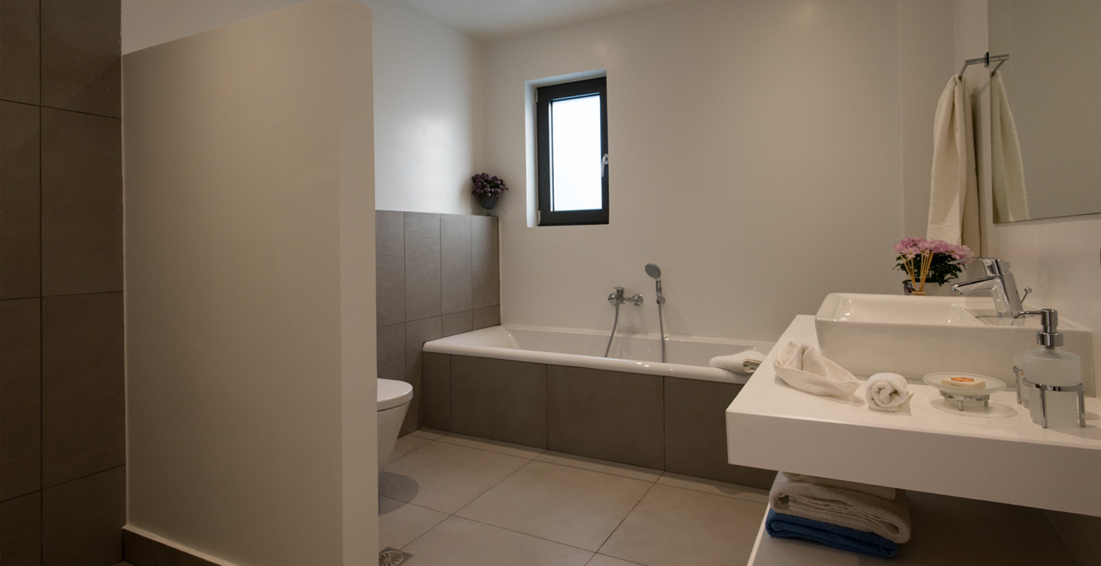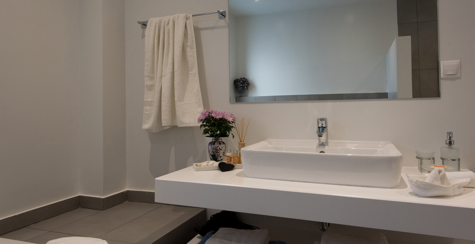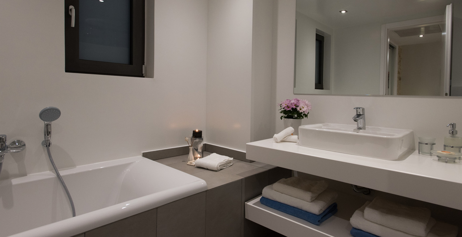 Guests are given the opportunity to relax in the nice and stylish living spaces, unwind in the hamam or work out at the gym, embrace the benefits of wellness or sit back in the cosy living areas and enjoy the amenities provided. The modern and fully equipped kitchen allow guests to prepare a meal of their choice and relish the flavours on the atmospheric outdoor area or simply catch the sun as they lay on the sun beds after a refreshing swim in the pool.