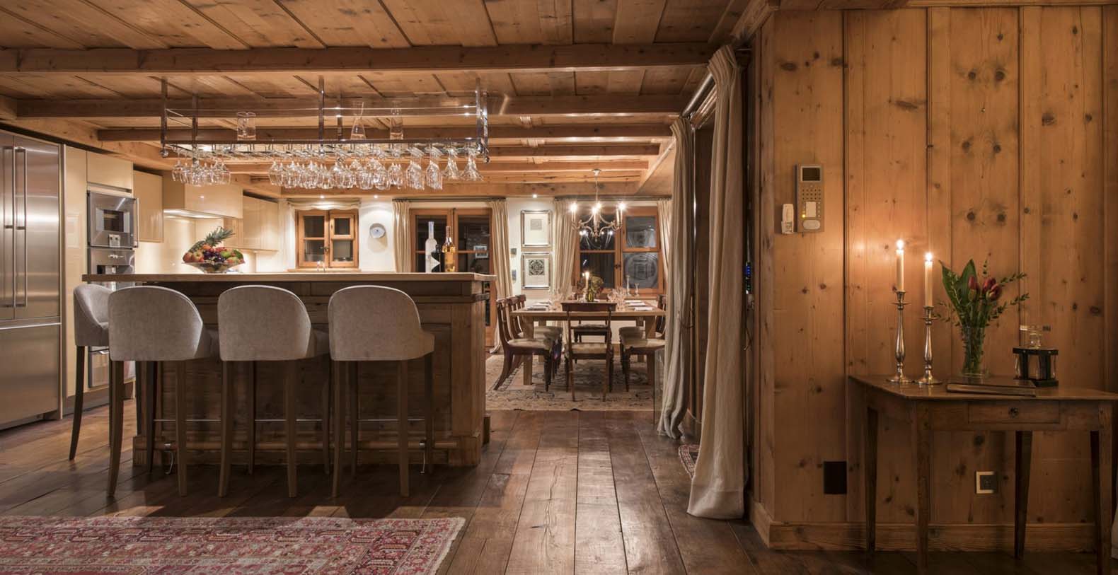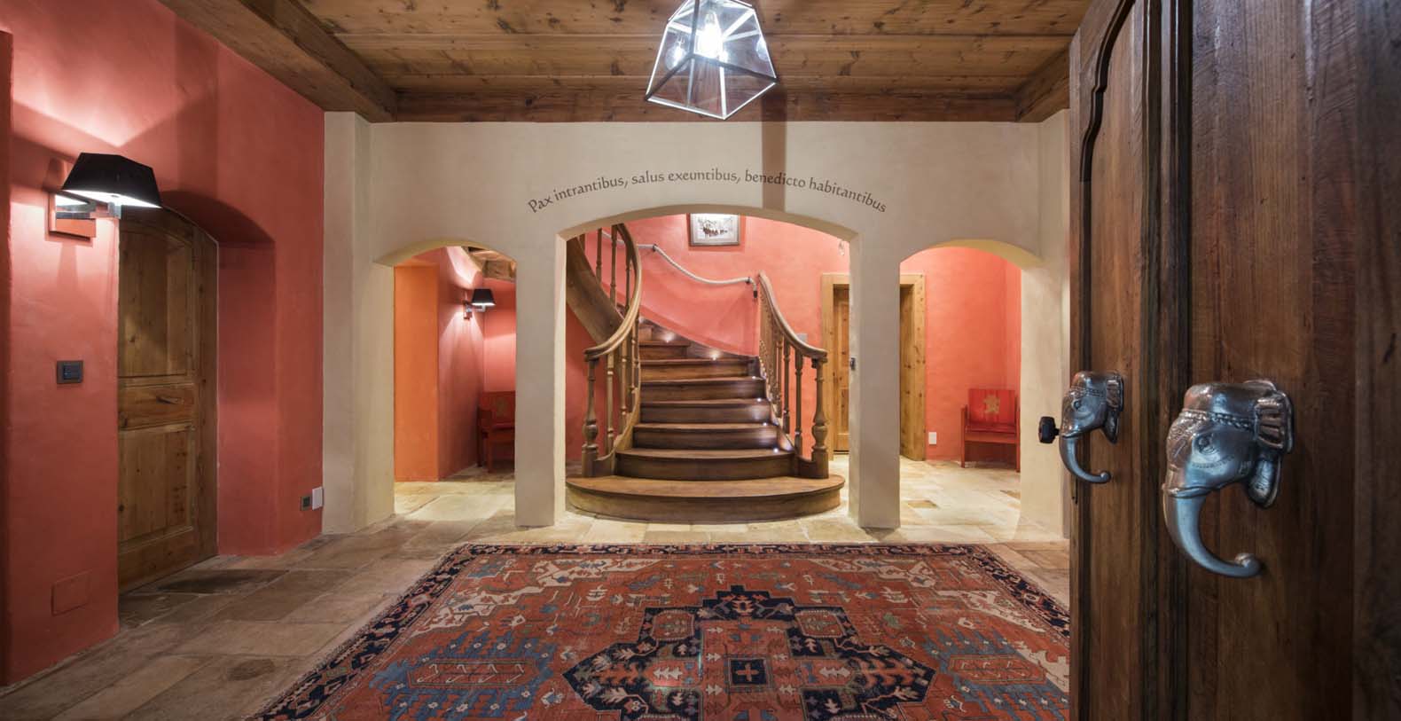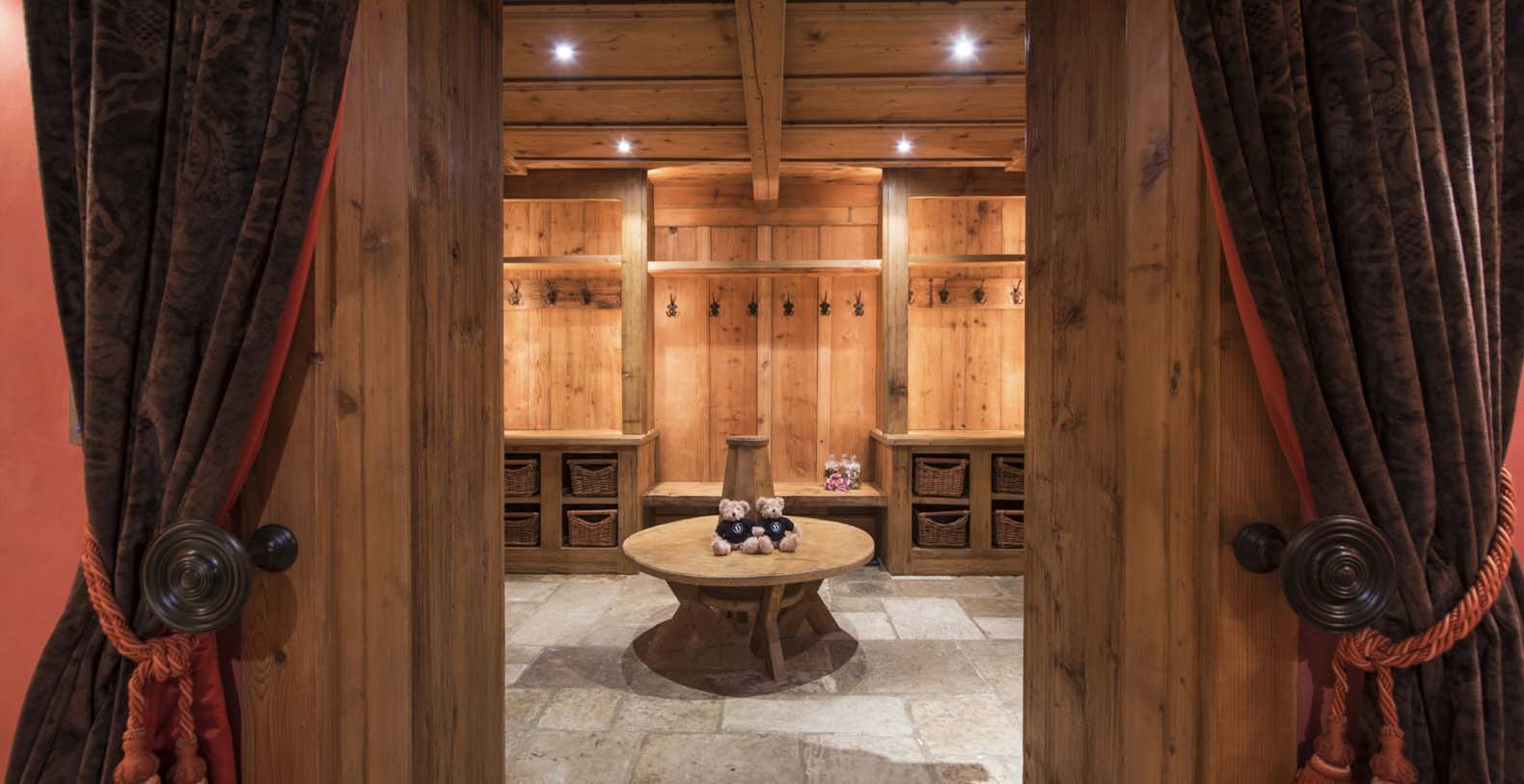 Upon arrival you enter the chalet into a grand and elegant hallway. The imposing staircase is lit sensitively; rich and serene, a sense of calmness washes over you as soon as you start to walk through the property. Off the main entrance hall, you will find the ski room beautifully reflecting a traditional alpine style.