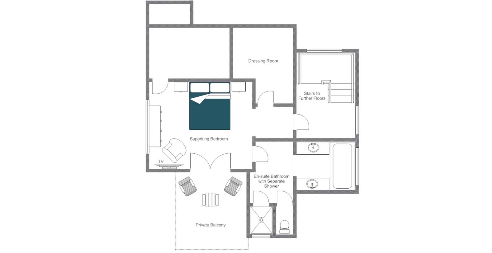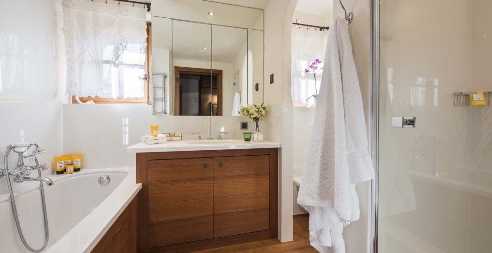 The master suite can be found on the top floor of Bella Coola. His and hers dressing rooms provide plenty of storage allowing the main bedroom to be clutter free. French windows open out onto a private terrace, surrounded by pine trees, ensuring maximum privacy whilst the views are wonderful. There is an en-suite bathroom with separate shower.