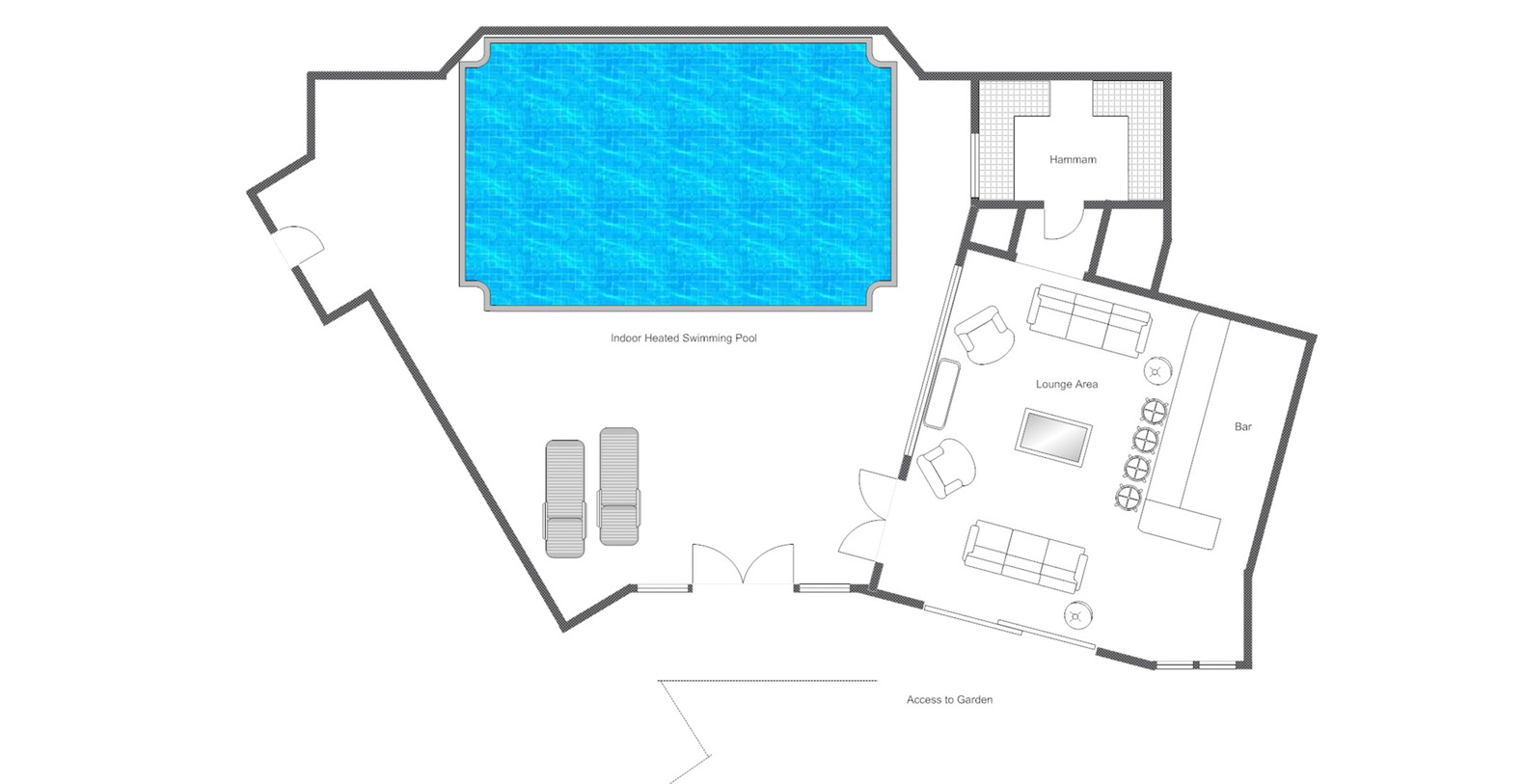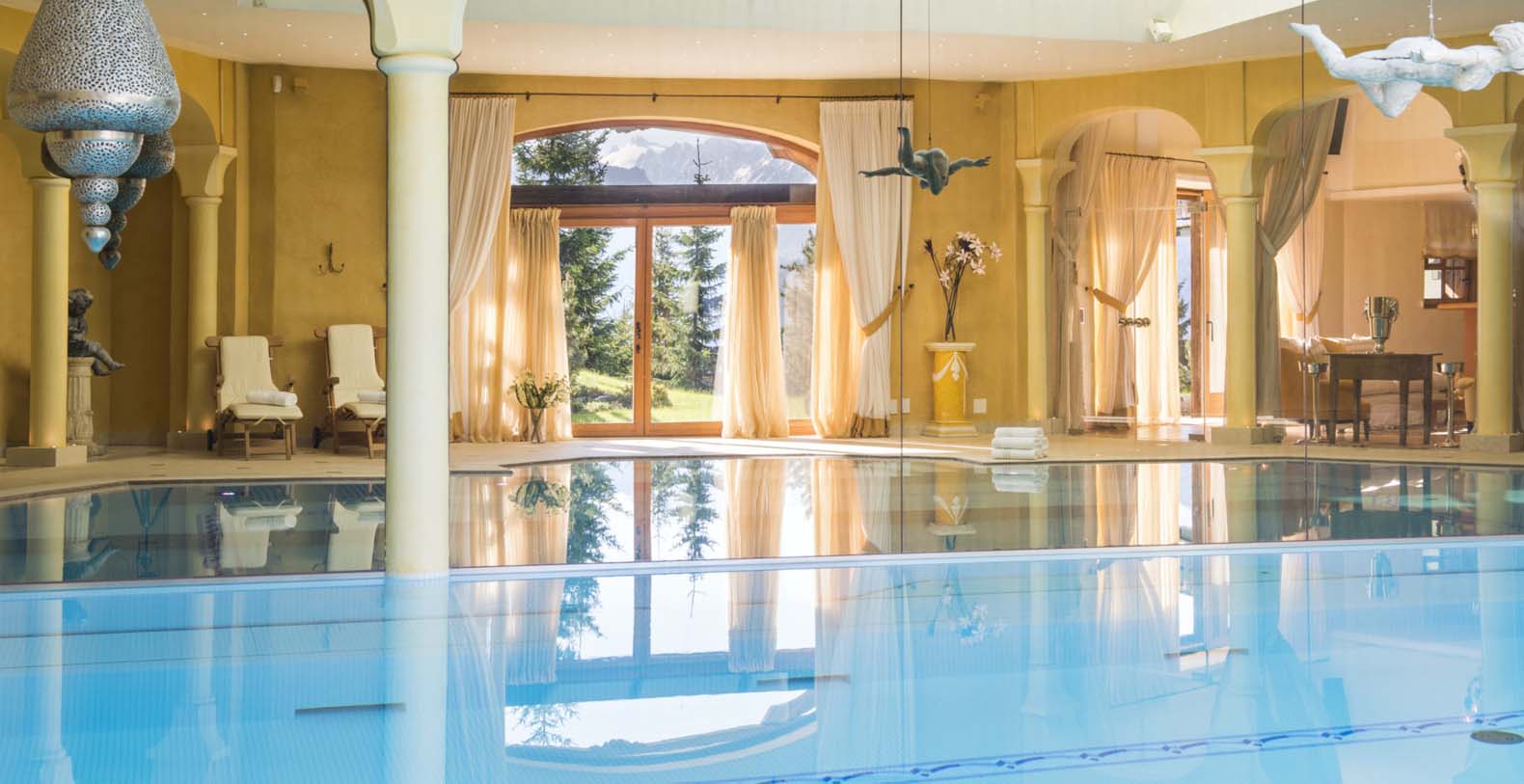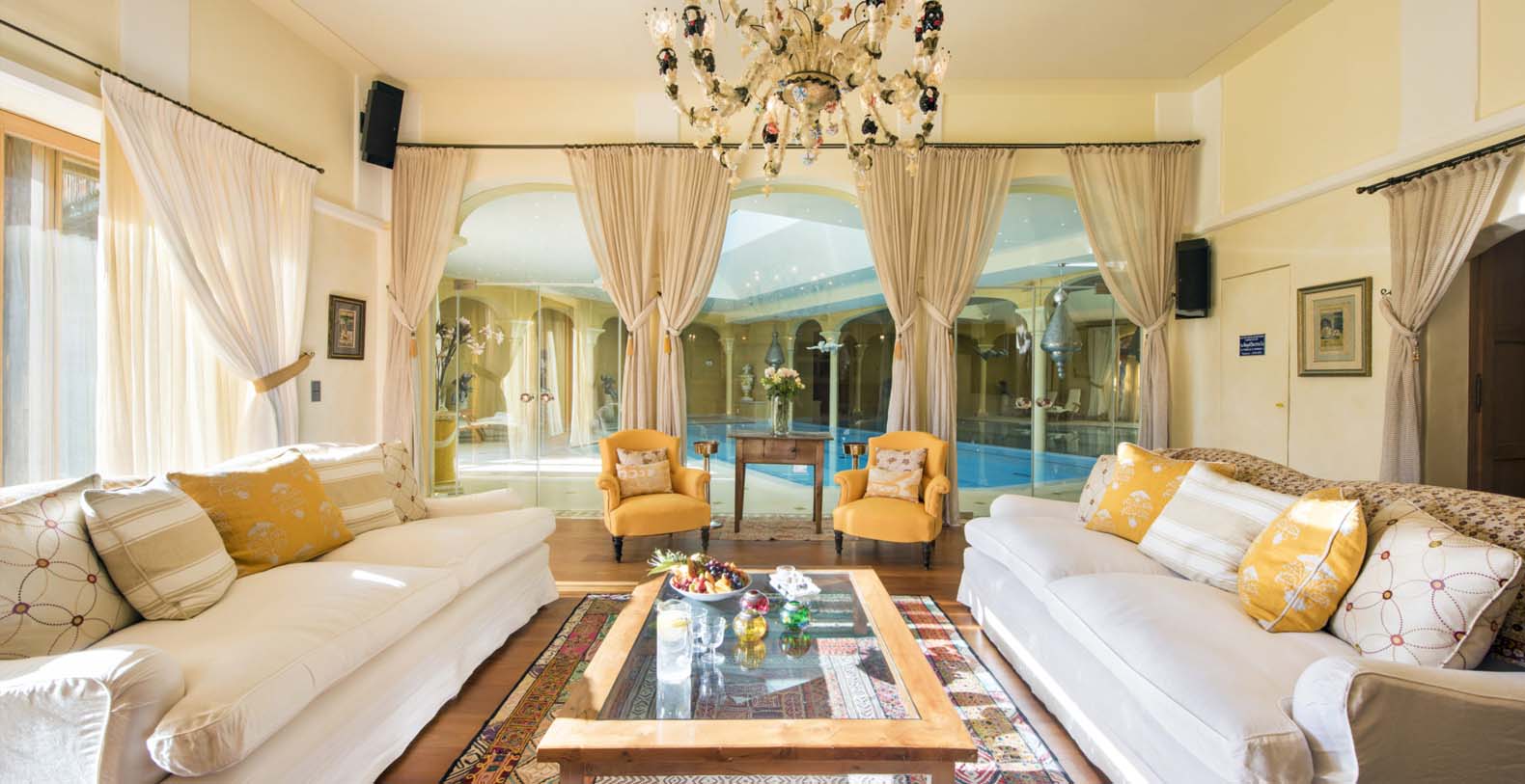 Also, off this floor, you can access the breathtaking colonial-style spa and wellness area. Imposing columns surround the indoor pool, whilst romantic drapes frame the floor to ceiling French windows which create a bright and airy space. Glass-filled archways separate the pool from the spacious champagne bar creating the perfect setting in which to relax and socialise. There is also a Turkish hammam and shower off this room.