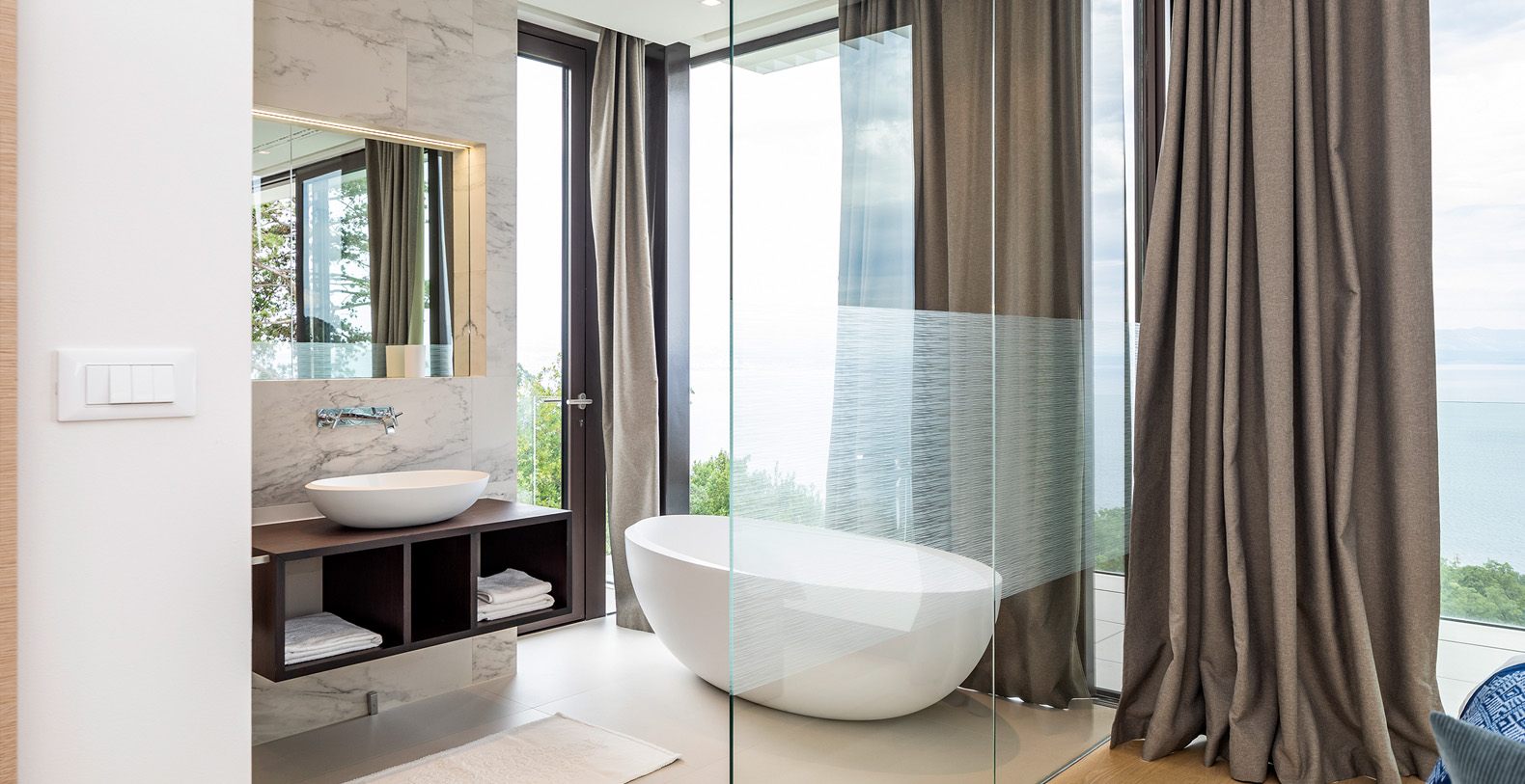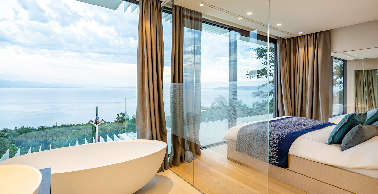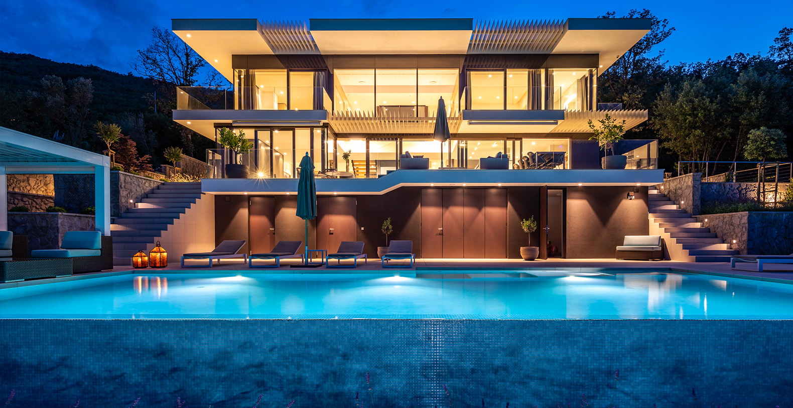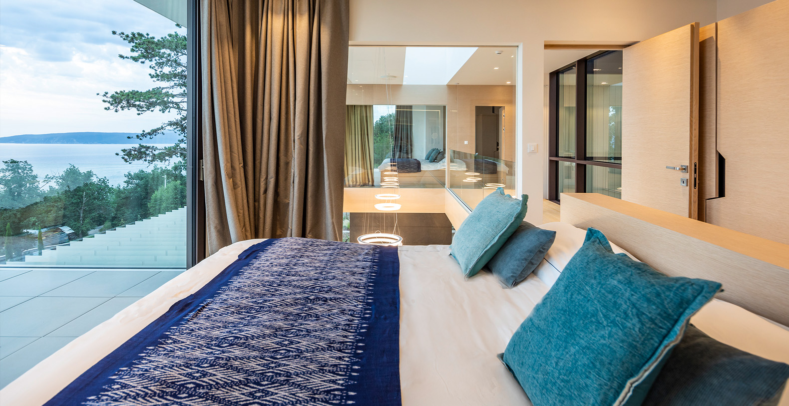 This exclusive luxury villa was built in 2017 and is situated in one of the most beautiful places in Istria. Timeless and elegant architecture, high ceilings and huge glass fronts create an extraordinary width. The villa, with its own infinity pool, is arranged over two floors on 460 square meters and offers space up to ten persons. Villa Aura has a total of 5 bedrooms (3 rooms with king size beds, 1 room with two single beds, 1 room with queen size bed) with ensuite bathrooms. Kitchen, fire place, outdoor pool, library/TV room, gym, sauna, guest bathroom, washing machine/tumbler, air-condition, central heating system, safe, alarm system, gas barbecue, garden, terrace, Wi-Fi, and parking space.
