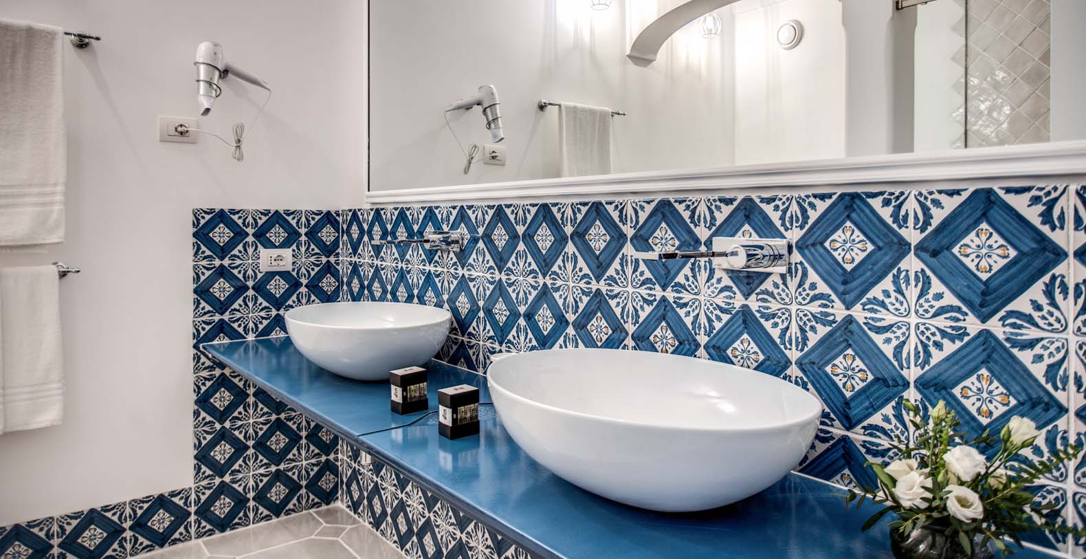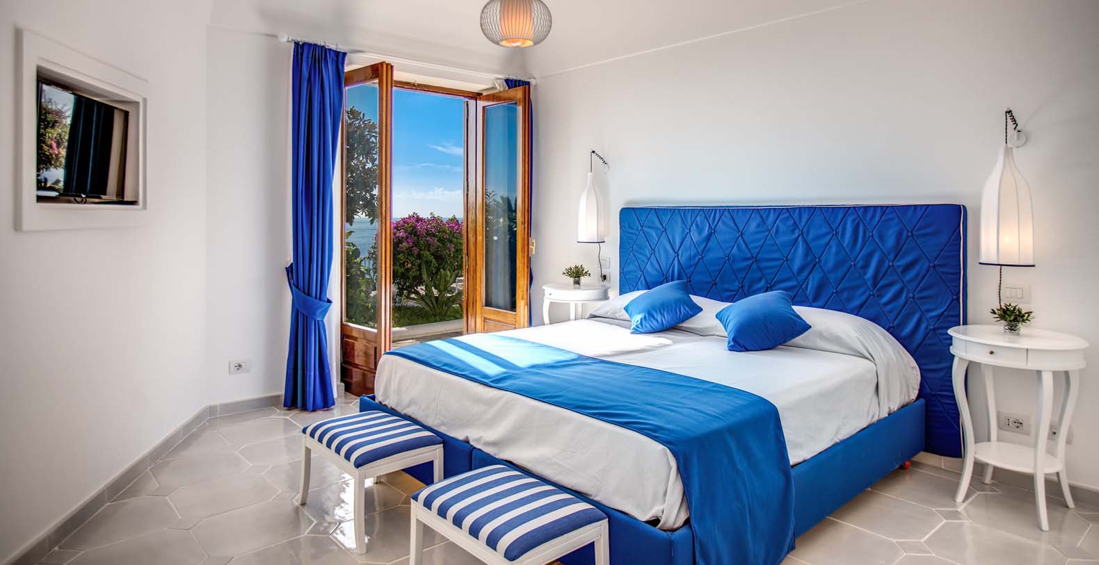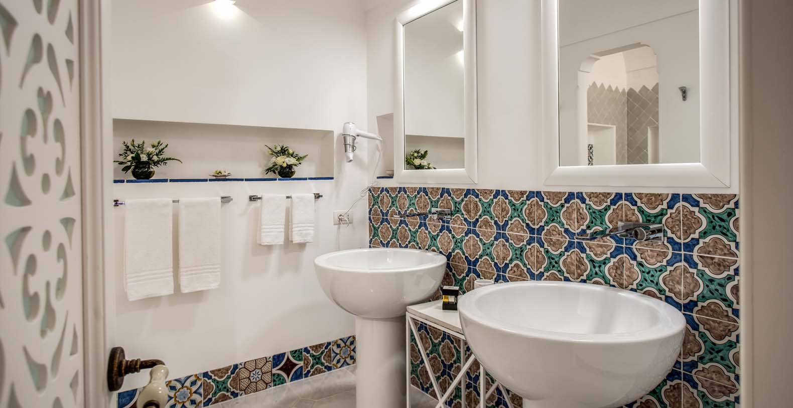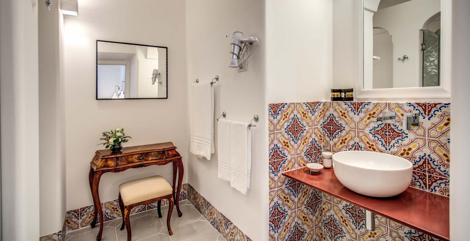 The Villa is located in a perfect location to explore the Amalfi area: 6,5 km to Positano, 8 km to Amalfi, 30 km to Pompei and 70 km to the Naples Airport. Villa Bideri is located just a few steps from the restaurants, bars and main shops. You will find the nearest restaurant 50 mts away, the SITA bus stop for the Amalfi Coast – Sorrento line – is a few meters away and the nearest beach is within easy walking distance. Surrounded by large terraces with Mediterranean plants and flowers, the villa boasts impressive views of the sea from Salerno bay to Capri, and Positano to Amalfi.