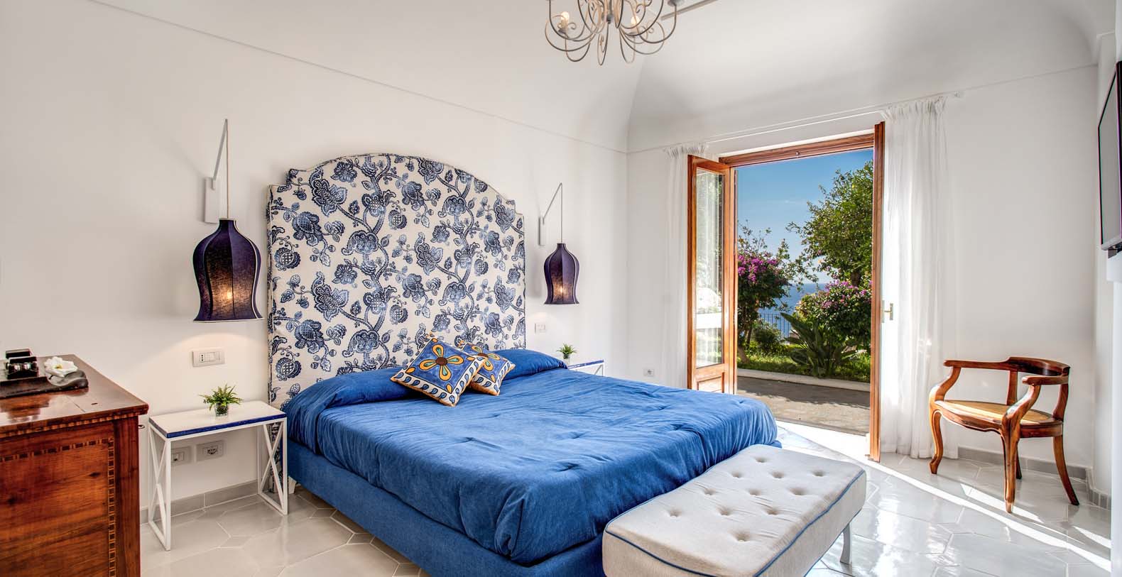 The amazing Villa Bideri is located in a secluded and private area, perched up on the Amalfi Coast right in the centre of the village of Praiano.