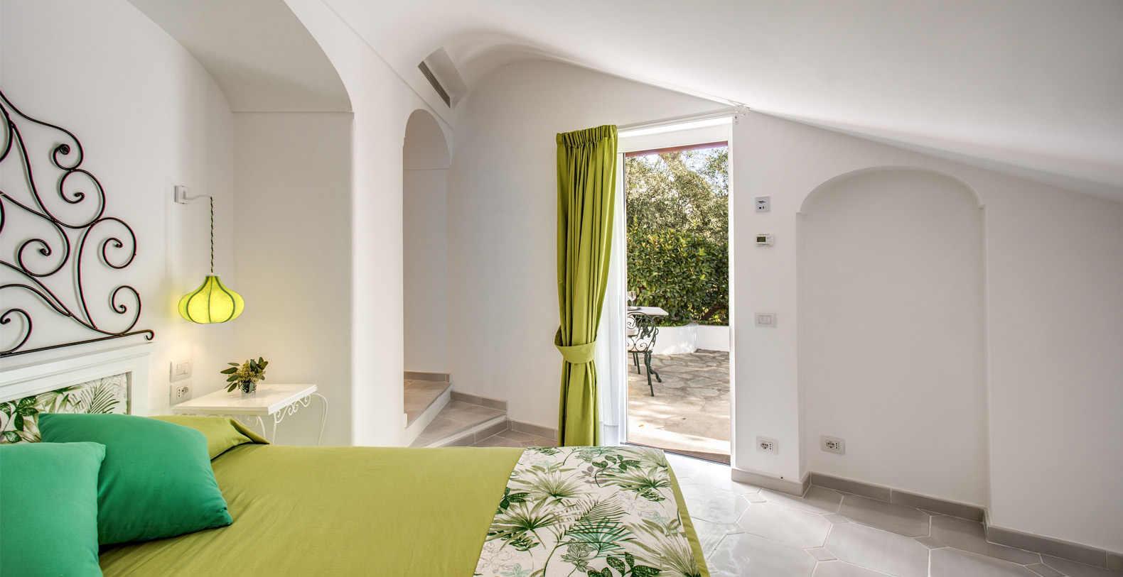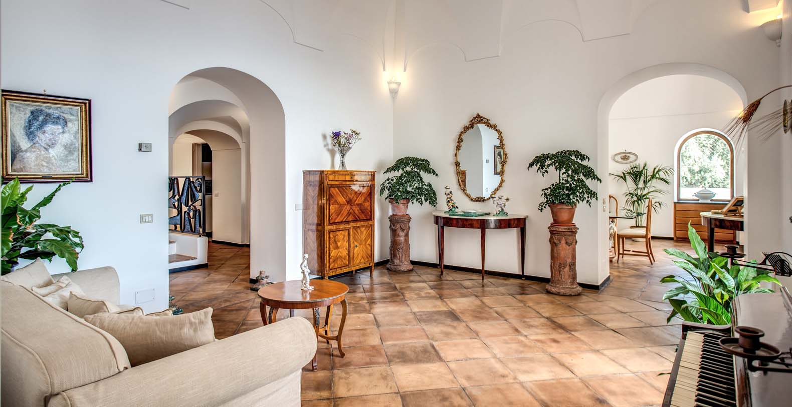 Villa Bideri blends perfectly with the natural surroundings, the house is a true Amalfi style building: all white with arched windows and columns. The property is spread over 4 floors. 3 Floors are at guests disposal: a lower floor, a ground floor and a tower up to the front door, which is accessed independently. The first floor of the building (between the ground floor and the tower) will be kept closed.