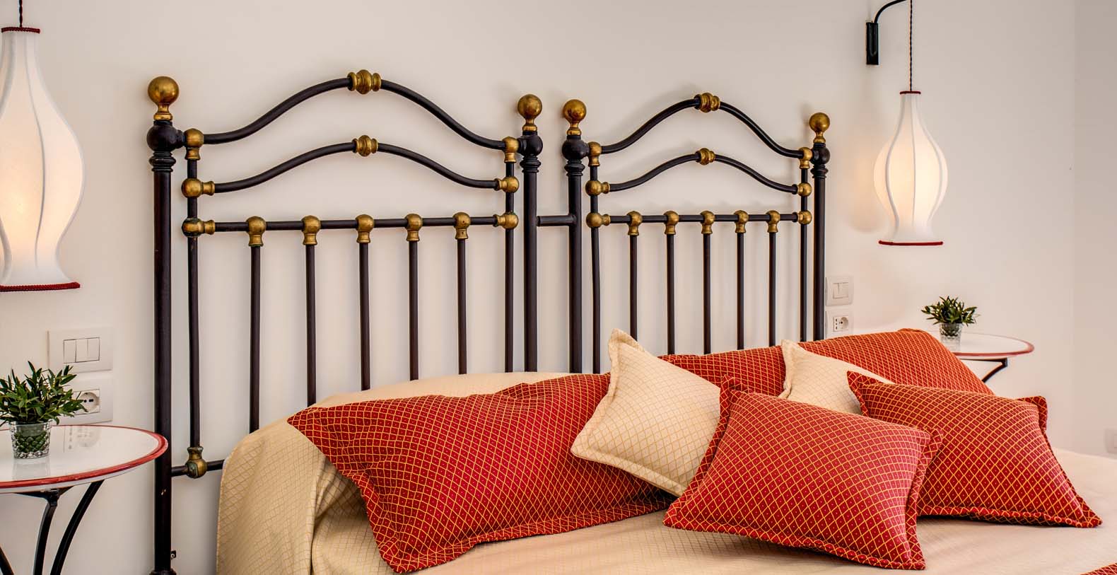 Lower Level: A 20 steps staircase leads to the lower floor. A long hallway connects 6 queens double rooms, all with en suite bathroom (all have shower) and French doors that open onto the terrace. All the bedrooms are decorated in a classic style with elegant furnishings. Some of the bedrooms can be made up as twin on request. One bedroom can be connected by a door to a next bedroom, if necessary.