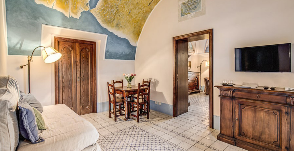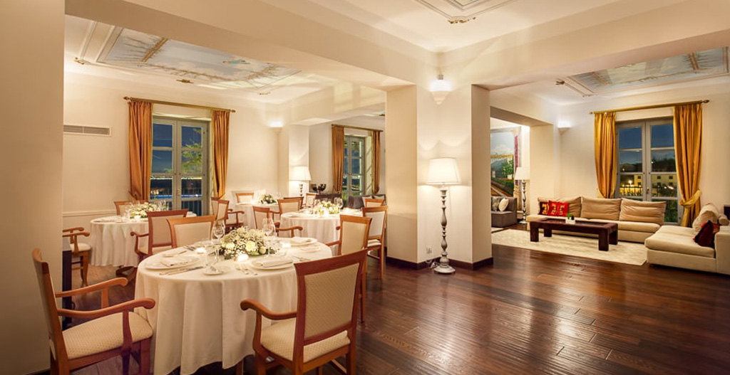Two internal halls with beautiful frescoes and a lovely terrace, overlooking the sea, create a refined atmosphere during sunless days, offering your guests a truly unforgettable experience.