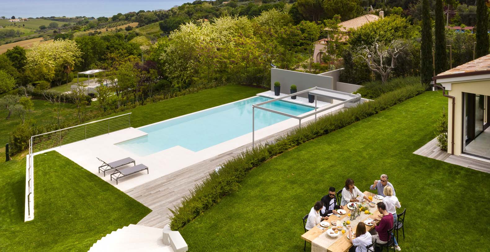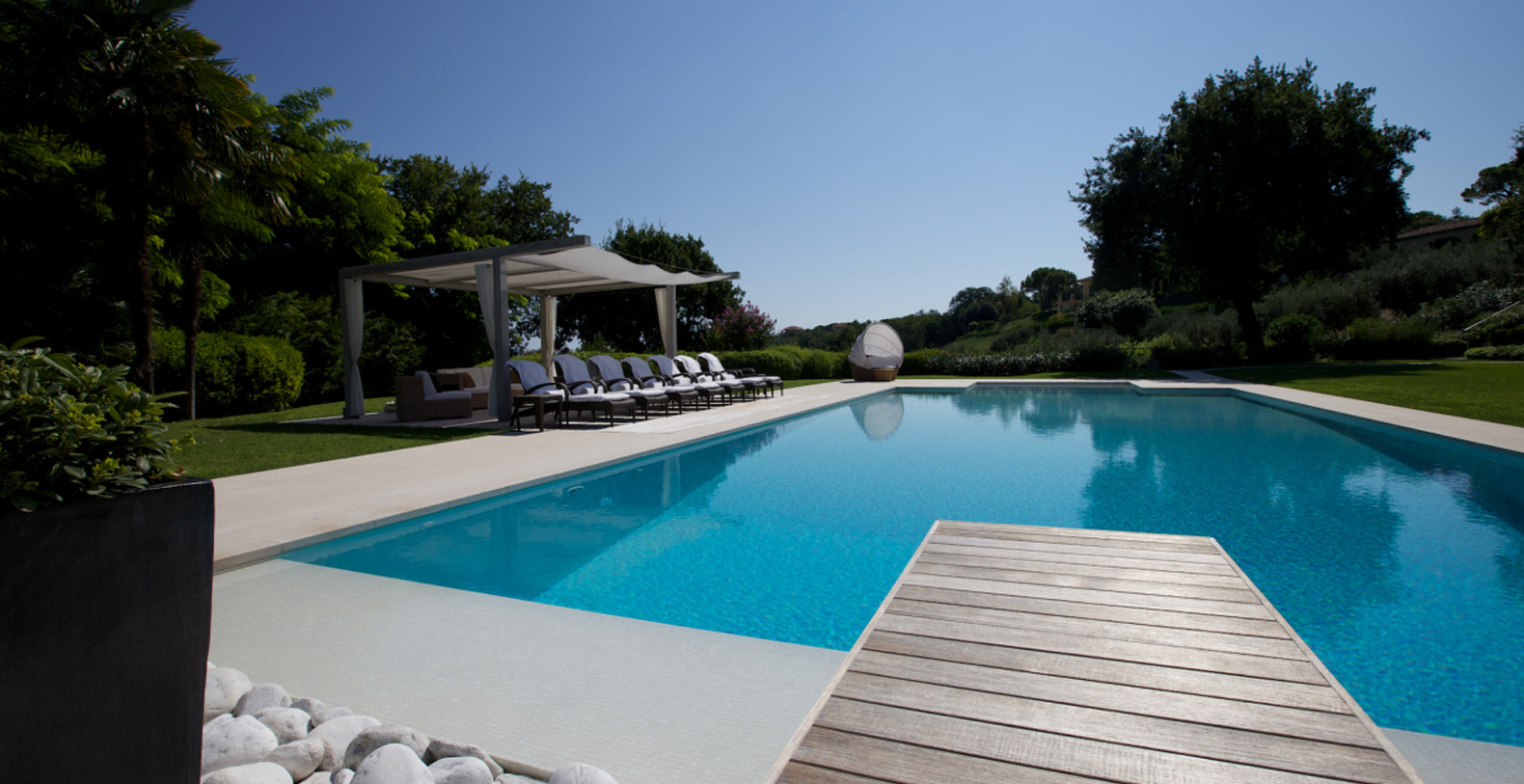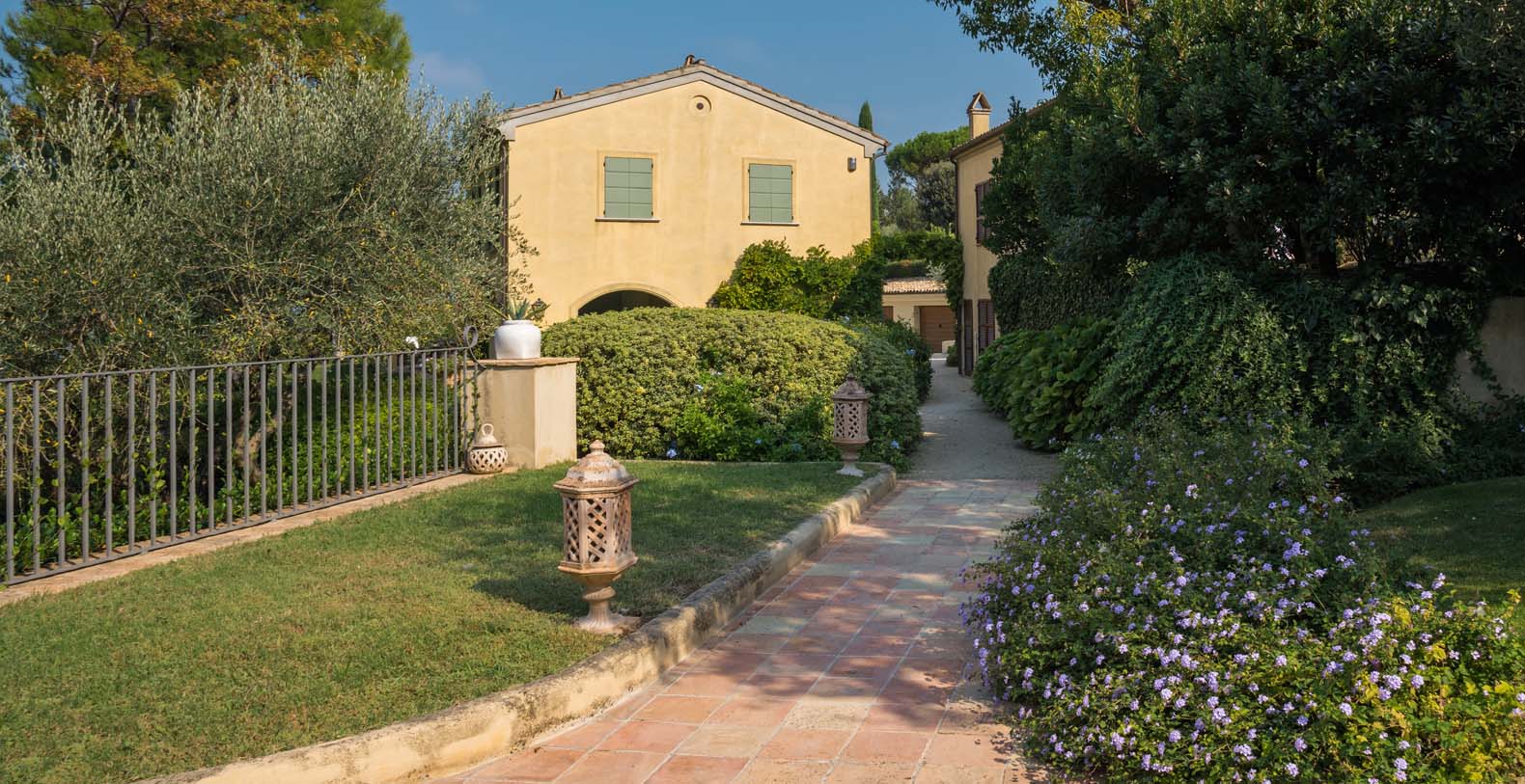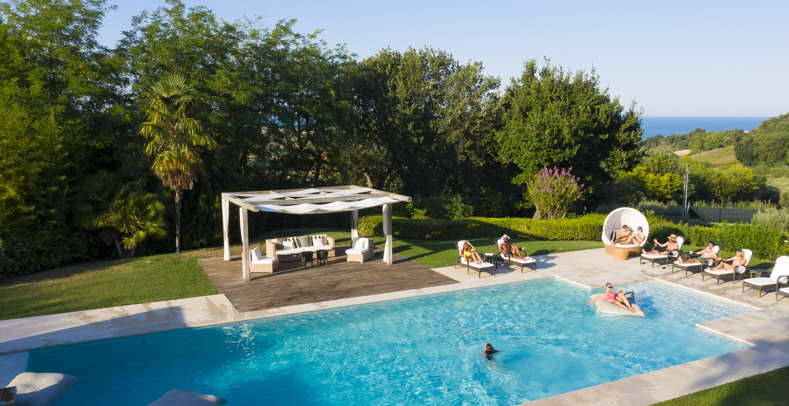 On the sweeping grounds, there are two swimming pools; the one at the main building is heated on request and has an infinity edge Hidden away, yet very close to the local town center, this estate includes ten bedrooms decorated in elegant style with color-washed walls in pale shades, contemporary fabrics, and several bespoke furnishing by local Italian artisans. Its current owners redesigned and restored the property over 2 years to let the guests enjoy the quality of all the features of the house.