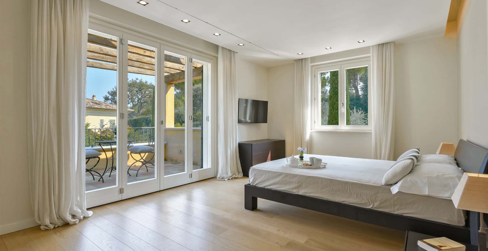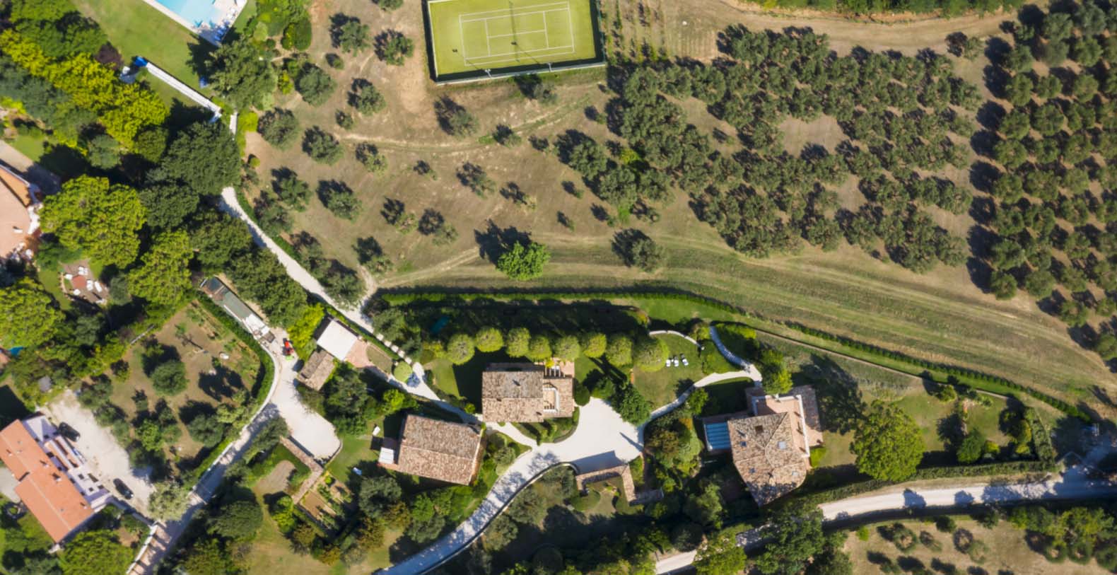 Cantico Estate is a wonderful set of Villas, in the Le Marche Region of Italy, located near the charming Borgo of Civitanova Alta, this estate comes with its olive groves, two swimming pools, a tennis court and an area specifically designed for yoga sessions called the studio. The property features a three-level main building and a two-level dépendance, both houses afford views of the scenic landscape from almost every angle. The interiors include spacious living rooms, several dining areas with garden vistas, well-equipped kitchens in both buildings, two gyms, a private SPA in the main building, a yoga center in the middle of the property and several rooms with a private balcony.