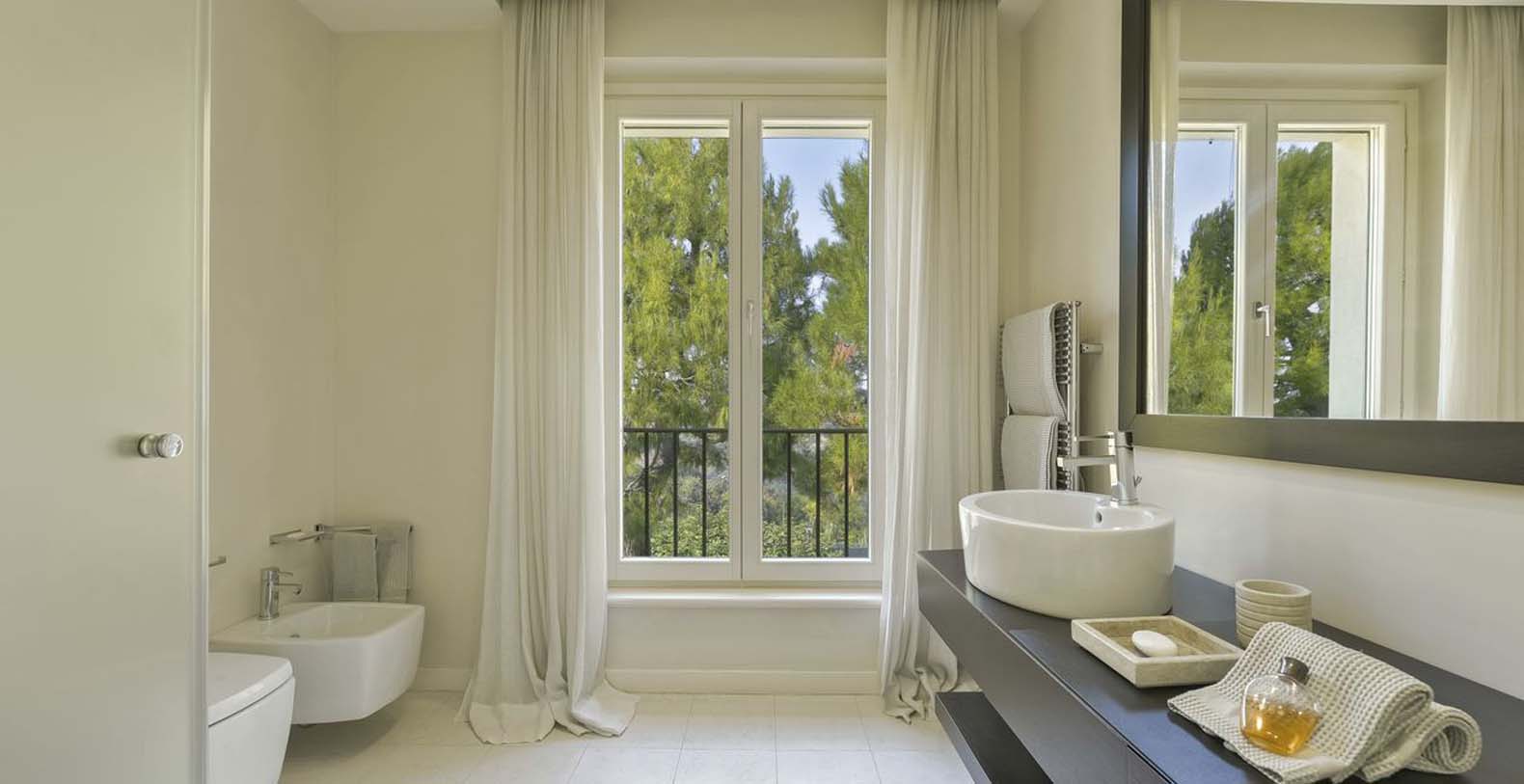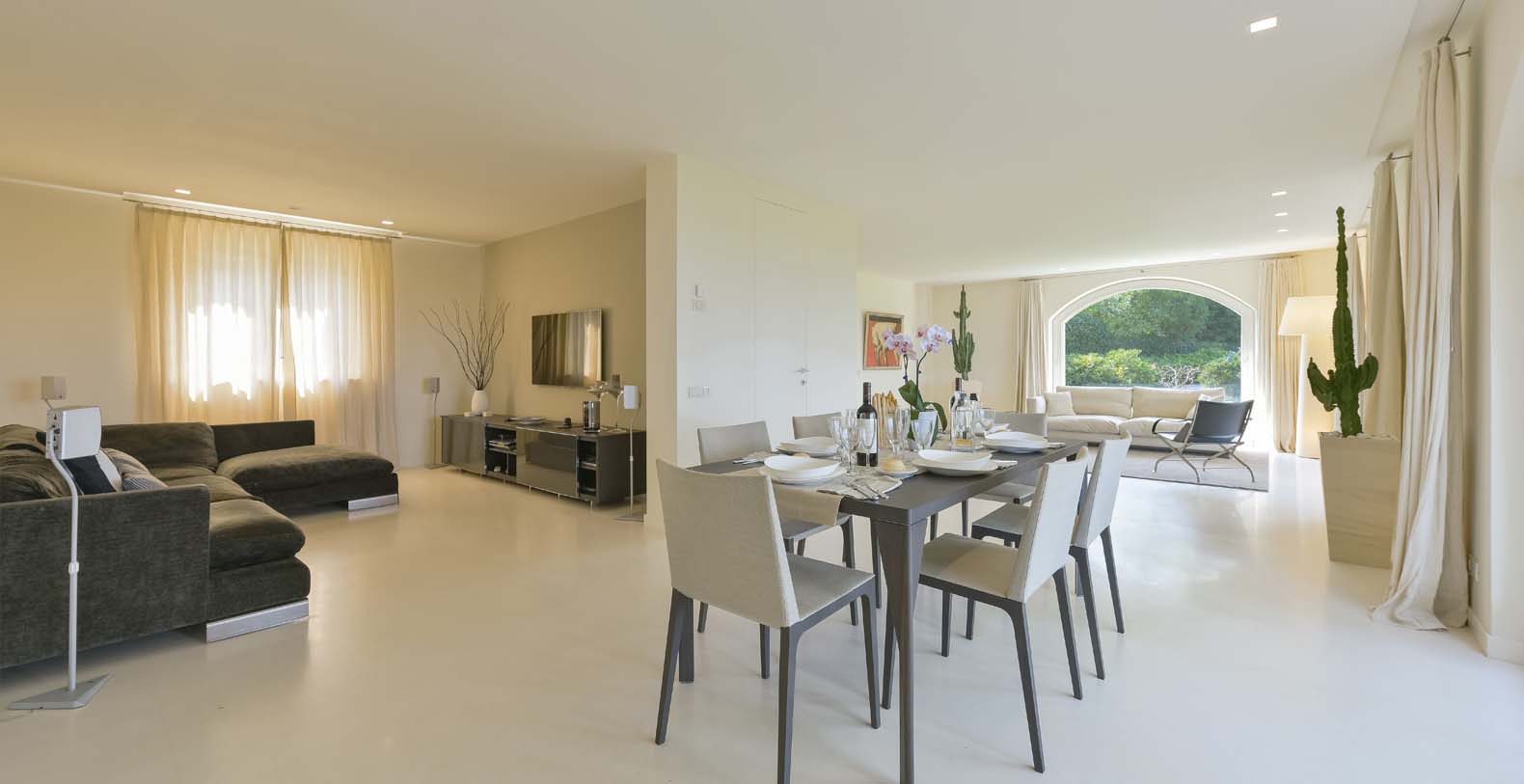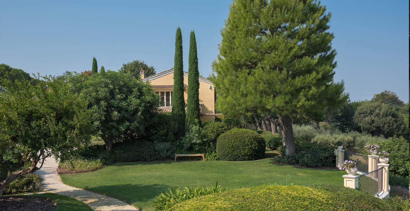 The home design, approached with research in the historical context, results in a modern style with natural stone, polished sleek concrete, brushed steel fittings. Modern yet very comfortable, this is a retreat full of light and a welcoming vibe. The main building interior measures 600 square meters, while the dépendance building measures 220 square meters. Altogether, it is possible to accommodate a total of 20 adults, and 2 extra friends or staff. The estate includes more than 3 hectares of private grounds, an olive grove and a tennis court. This is an environment especially designed for yoga enthusiasts.