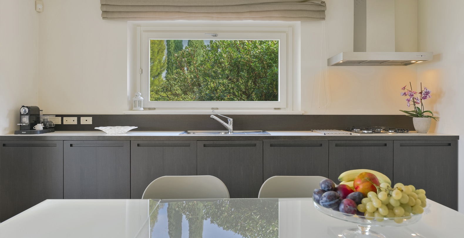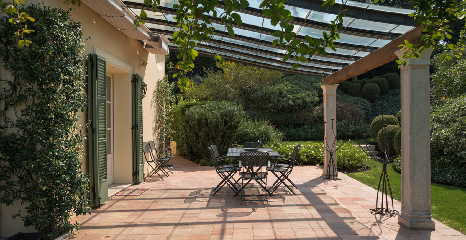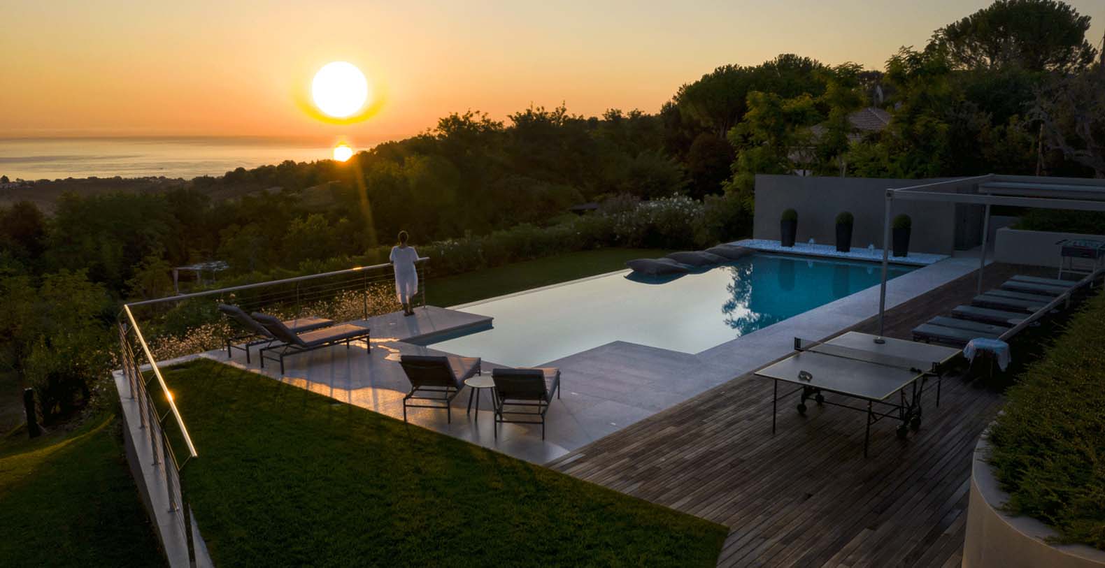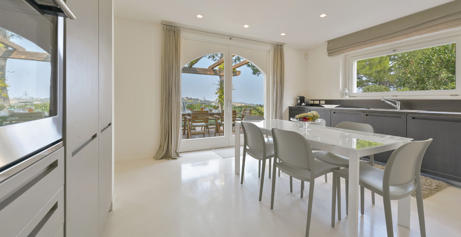 The home design, approached with research in the historical context, results in a modern style with natural stone, polished sleek concrete, brushed steel fittings. Modern yet very comfortable, this is a retreat full of light and a welcoming vibe. The main building interior measures 600 square meters, while the dépendance building measures 220 square meters. Altogether, it is possible to accommodate a total of 20 adults, and 2 extra friends or staff. The estate includes more than 3 hectares of private grounds, an olive grove and a tennis court. This is an environment especially designed for yoga enthusiasts.