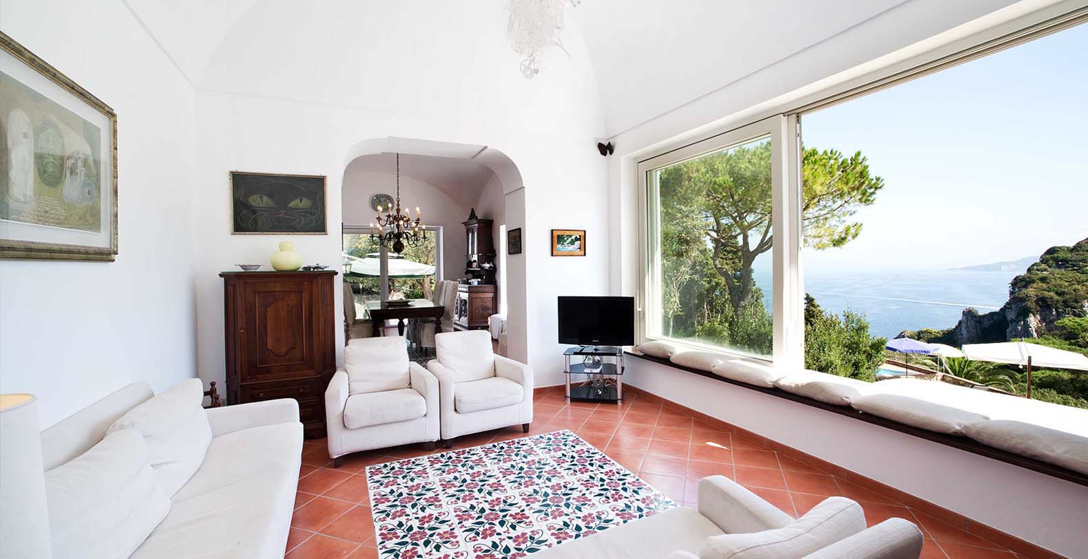 Some of the elements that make this villa special include its large windows illuminating the property and filling the villa with natural light; it’s pool (a less common feature on Capri), and its beautiful garden with lemon, olive, and fig trees.