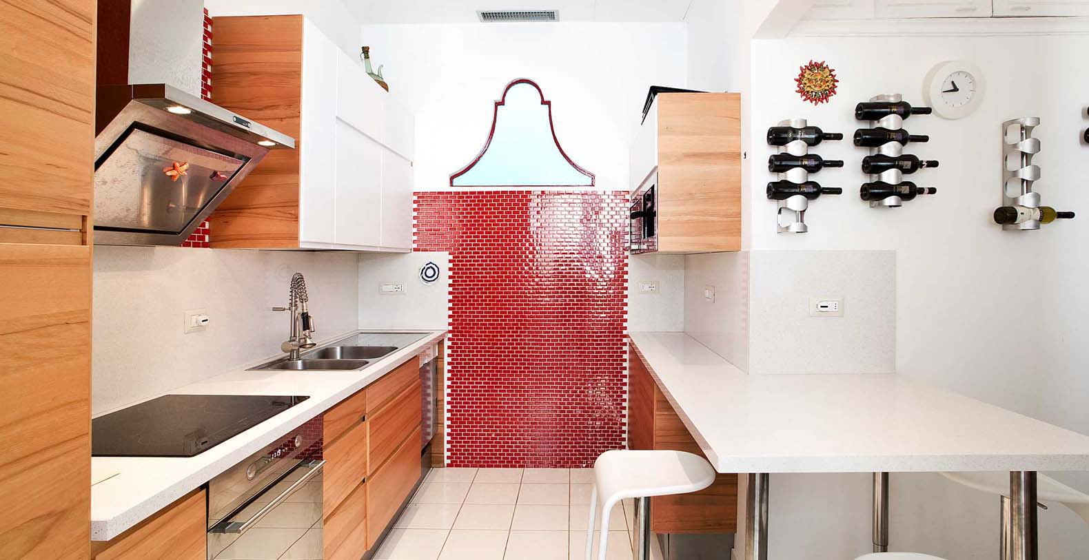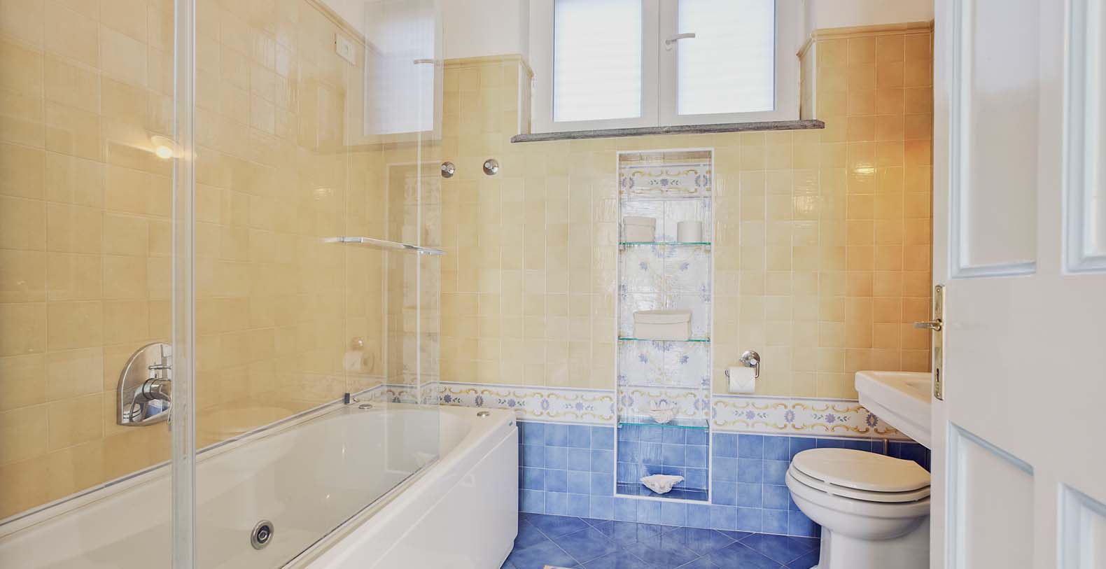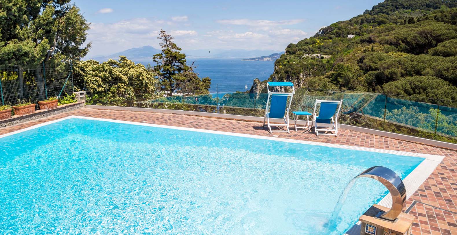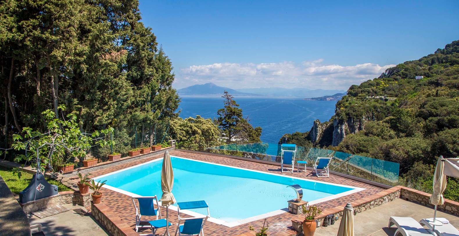 A terrace with a beautiful view of Mount Vesuvius and the Mediterranean lead into the pool area, where you will find a very large patio equipped with an external kitchen. The terrace bathroom includes separate men’s and women’s dressing rooms and makes the pool area totally independent from the rest of the house.