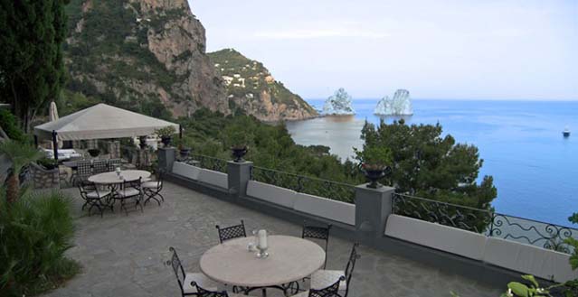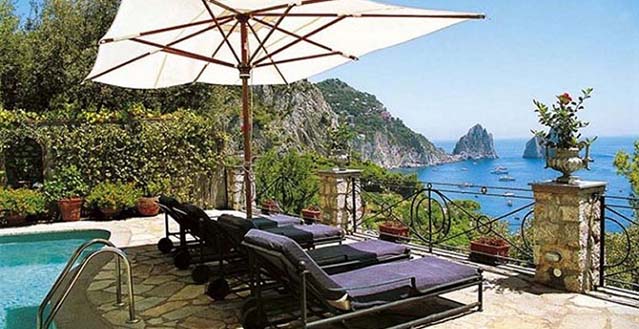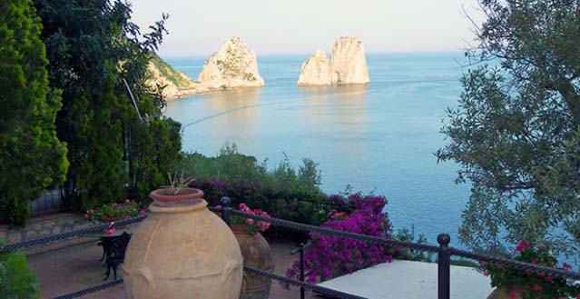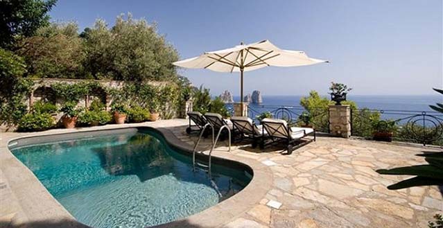 Luxury Capri villa with pool – Set on the cliffs overlooking the world-famous Rocks of Capri, Faraglioni di Capri is an elegant Mediterranean-style villa in an absolutely stunning location, within walking distance of the rocky beach of Marina Piccola Bay and the lively Piazzetta in the heart of Capri village centre.