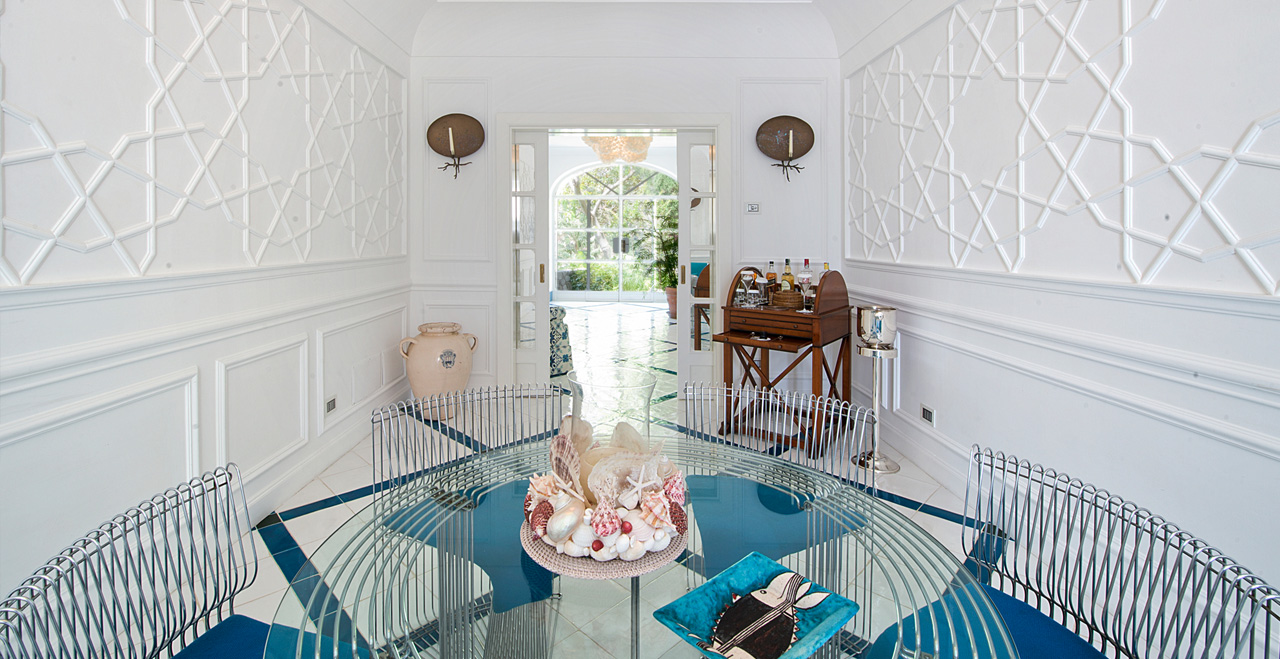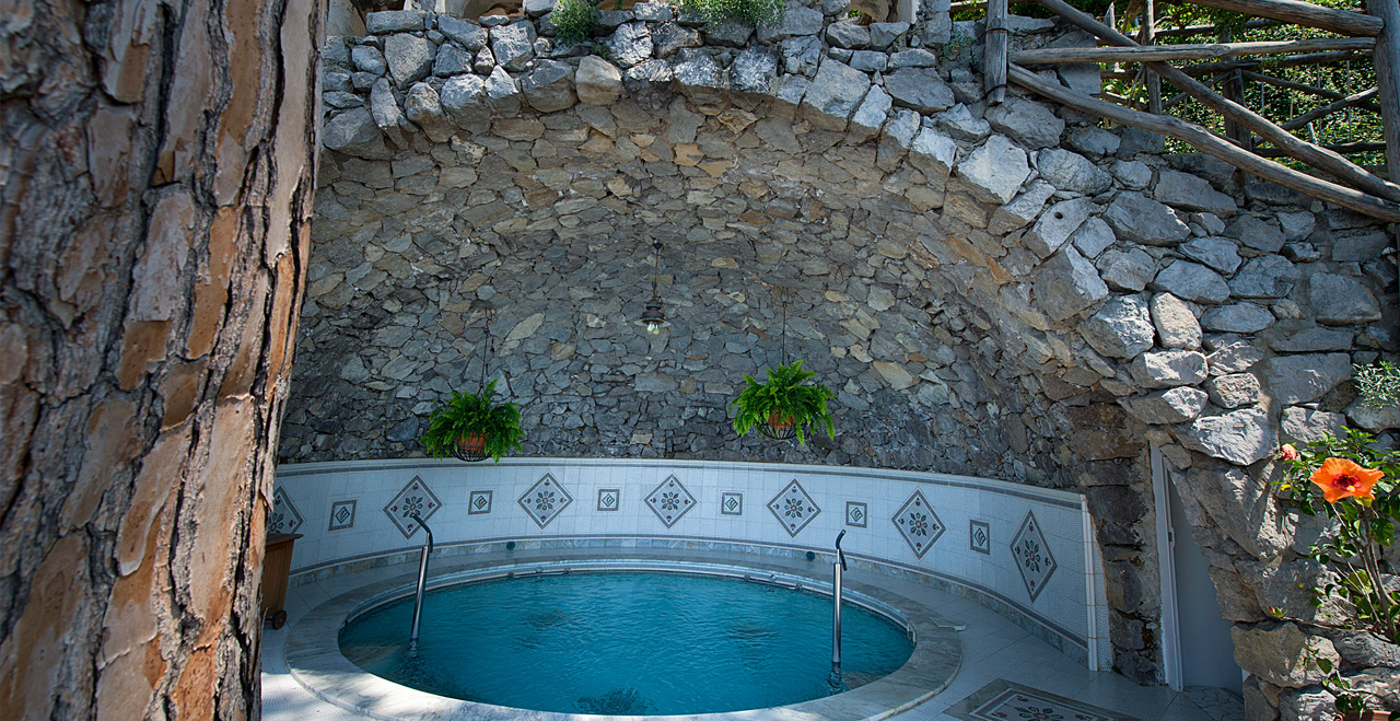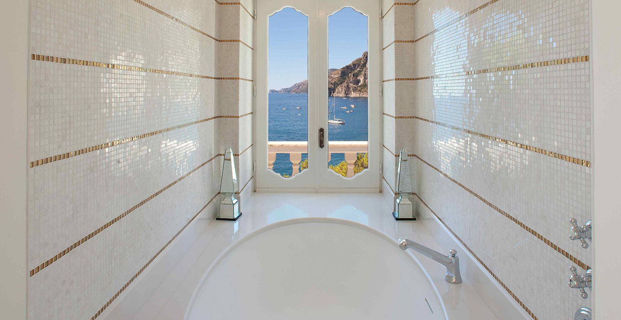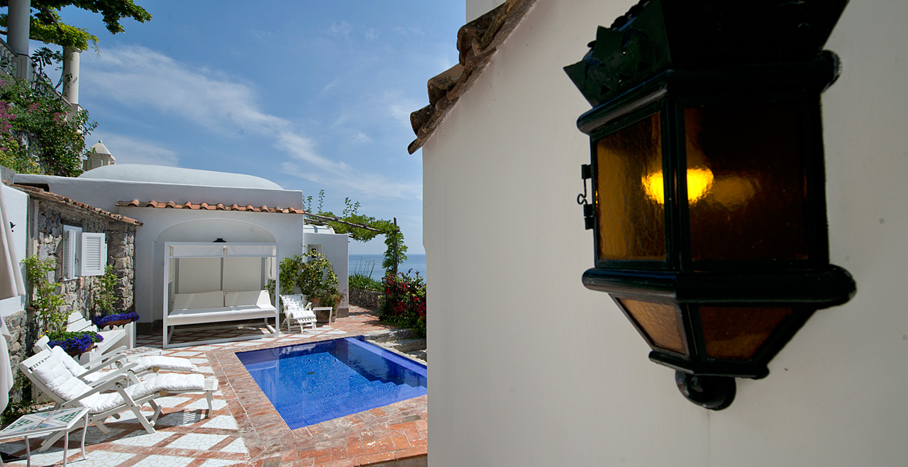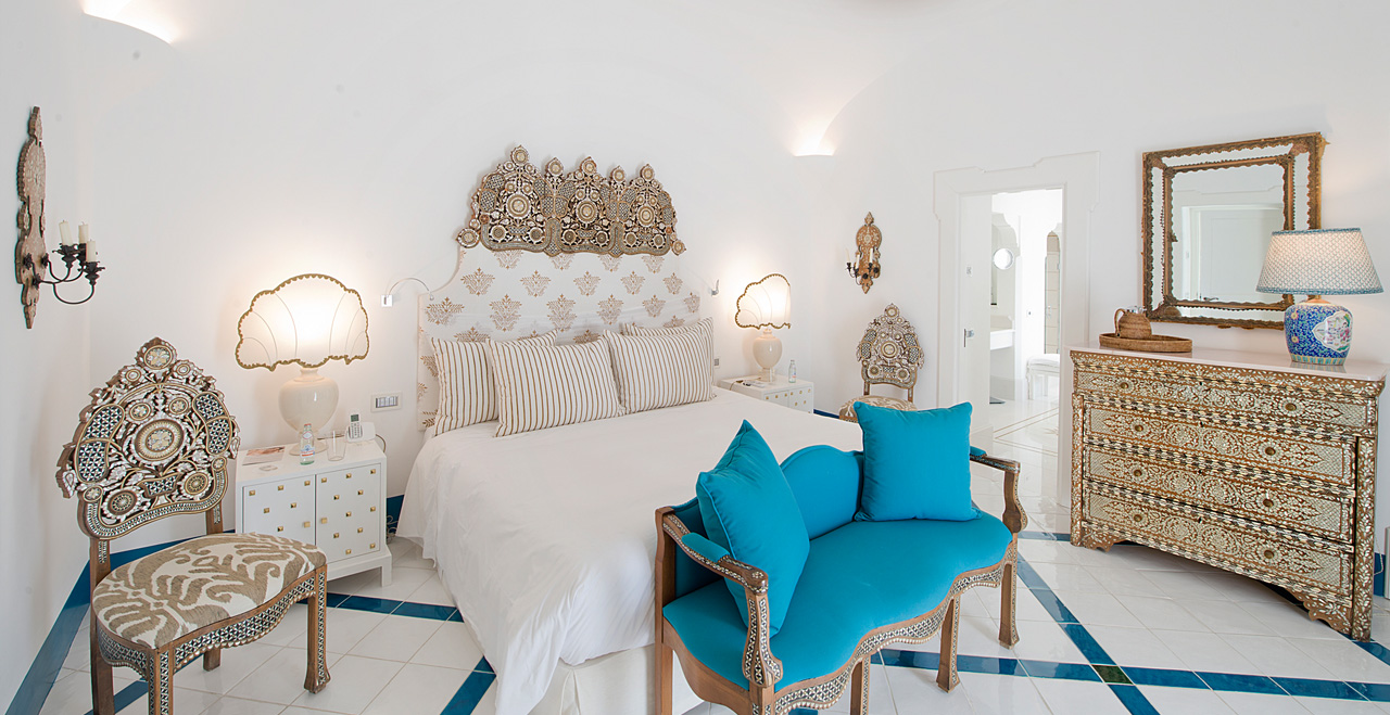 Il Maestro enjoys a privileged setting; hidden among the foliage of palm trees, oleanders and bougainvillea cascading over the terraces. A lavish and exotic combination of Vietri hand-painted tiles, glass from Murano, Carrara marble and Syrian mother-of-pearl mosaics adorn this splendid property. The villa is part of an exclusive, private gated domain, an oasis created over eight levels of terraced grounds, dotted with tall shady plants and scented flowers. Enjoy the intimacy of your own private sun terrace and plunge pool, or choose the more sociable communal areas shared only with other guests of this small estate, all with stunning sea views. The restaurant, the lounge bar and the outdoor fitness centre with round Jacuzzi pool complete this idyllic setting.