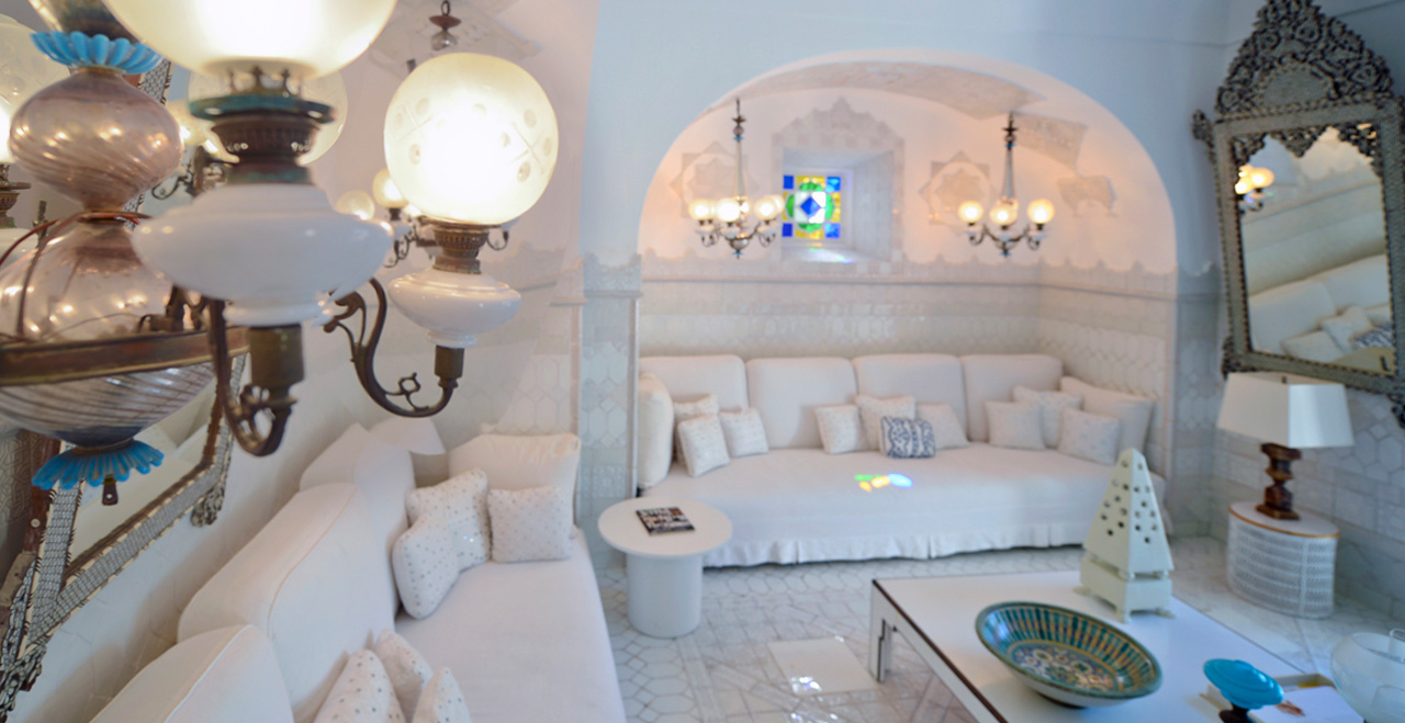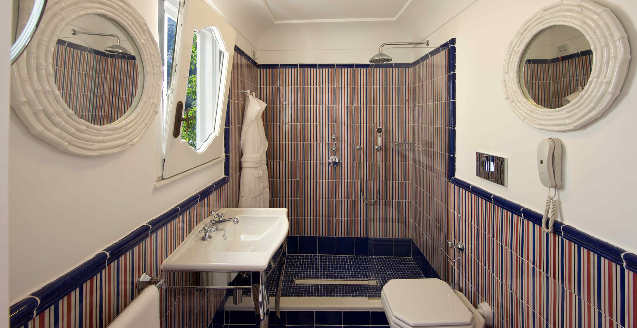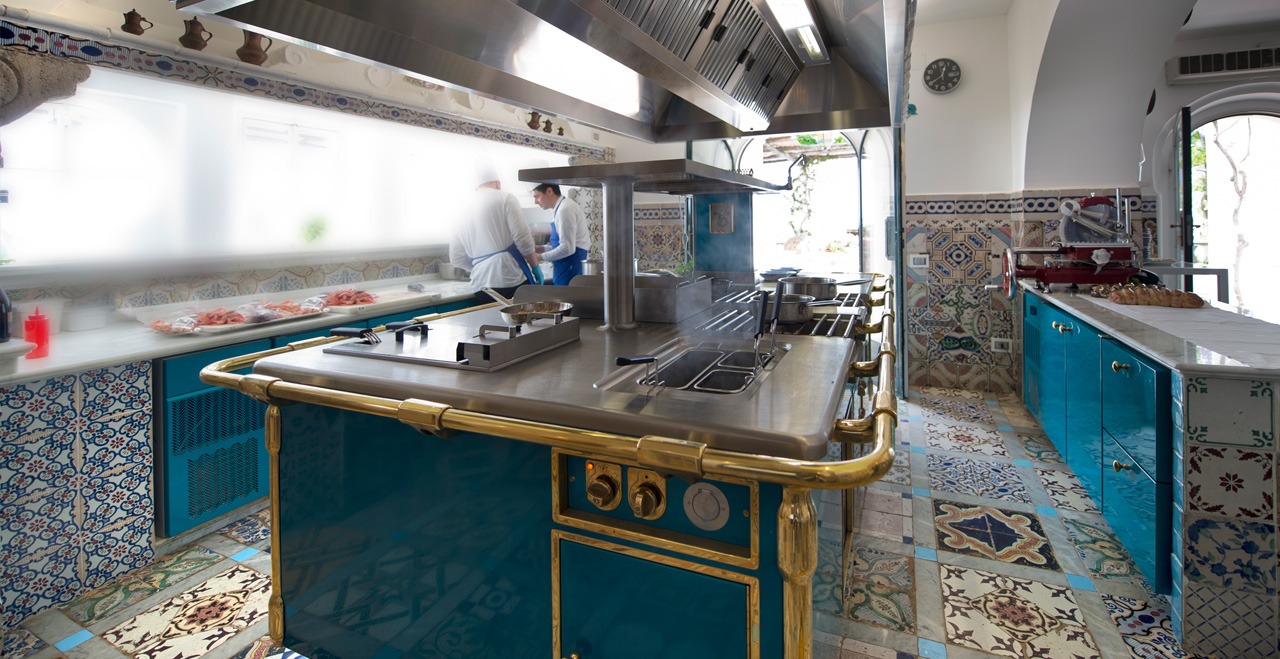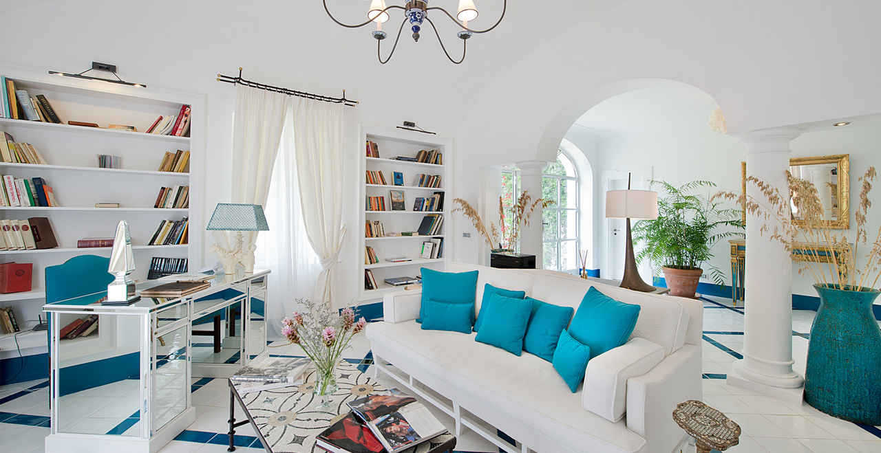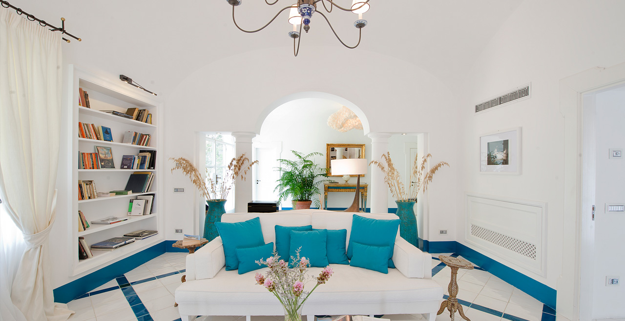 Il Maestro enjoys a privileged setting; hidden among the foliage of palm trees, oleanders and bougainvillea cascading over the terraces. A lavish and exotic combination of Vietri hand-painted tiles, glass from Murano, Carrara marble and Syrian mother-of-pearl mosaics adorn this splendid property. The villa is part of an exclusive, private gated domain, an oasis created over eight levels of terraced grounds, dotted with tall shady plants and scented flowers. Enjoy the intimacy of your own private sun terrace and plunge pool, or choose the more sociable communal areas shared only with other guests of this small estate, all with stunning sea views. The restaurant, the lounge bar and the outdoor fitness centre with round Jacuzzi pool complete this idyllic setting.
